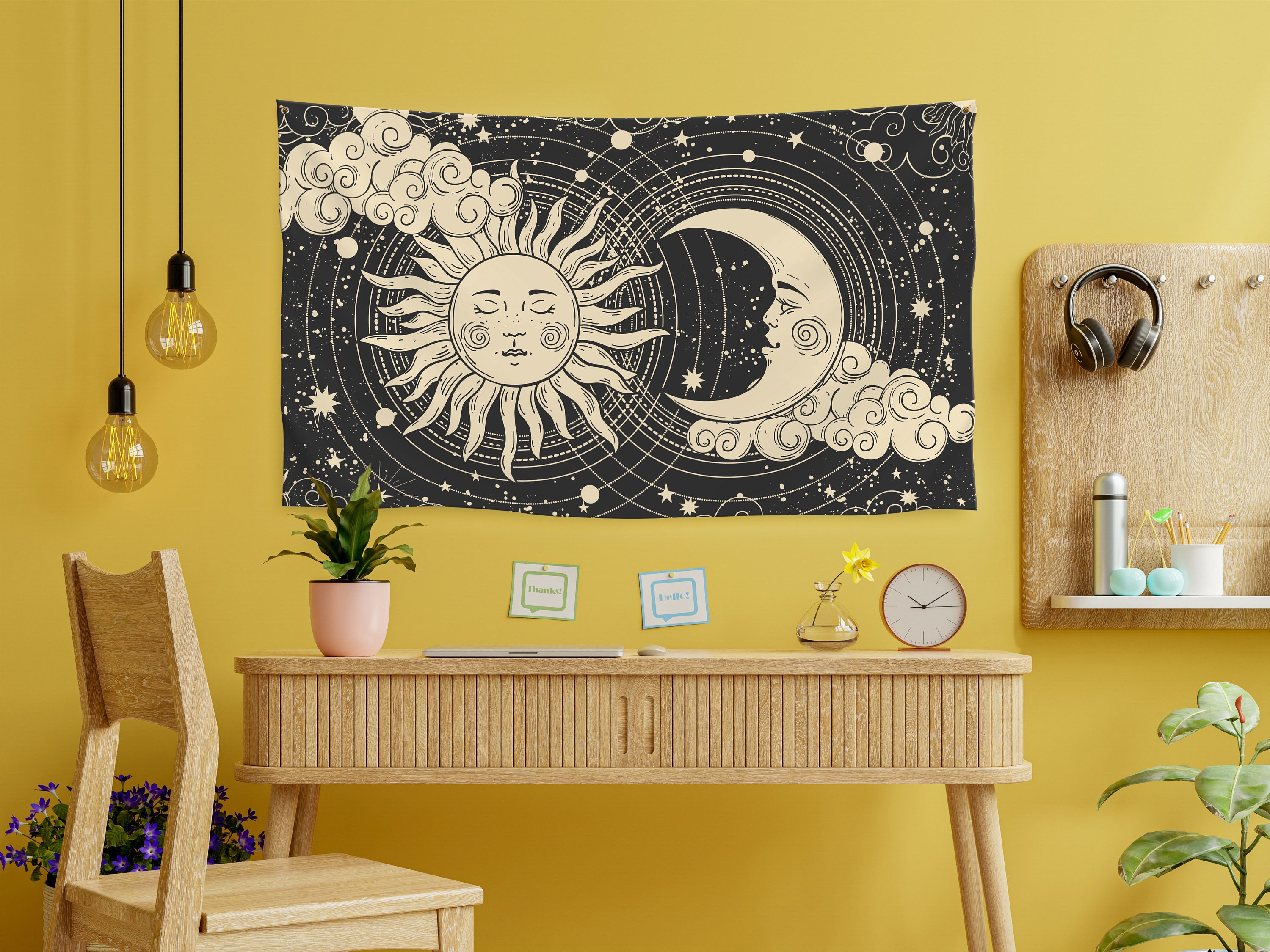 Tapisserie Murale En Polyester Avec Motif Soleil Et Plage | N°1 De La Astrologie Divination Tapis De Plage Soleil Lune 14 MOTIF EXCLUSIF ET CLAIR : La technologie d'impression HD est appliquée pour imprimer clairement les motifs de tapisserie murale en forme de vigne florale, ce qui montre des effets magnifiques et durables. La vigne est entourée de la lune et des étoiles, ce qui rend votre pièce pleine de mystère et de psychédélique.EXCELLENT MATÉRIEL TAPISSERIE : Cette tapisserie bohème est fabriquée... Tenture Chambre Style Bohème 91x122 Cm Sophia Art Tapisserie Murale Bohème à Suspendre Avec Motif Soleil Brûlant Et Soleil Céleste, Lune Et Planète (jaune Déco Intérieur Mystique Design exquis : imprimés délicats, motifs clairs et couleurs vives. Utilisations multiples : cette tapisserie peut être utilisée pour une suspension murale, une serviette de plage, une couverture de pique-nique, une tenture de porche, une nappe, une couverture de lit, une housse de canapé, des décorations de dortoir, des décorations de plafond, des rideaux et d'autres façons. Tapisserie Murale En Polyester Avec Motif Soleil Et Plage | N°1 de la... C'est un bon choix pour votre chambre. Conseils : veuillez laver à l'eau froide, ou vous pouvez également utiliser la machine à laver en mode doux. Chaque tapisserie est livrée avec 8 rubans adhésifs double face en mousse, ce qui est facile à installer. N'oubliez pas de repasser à basse température.