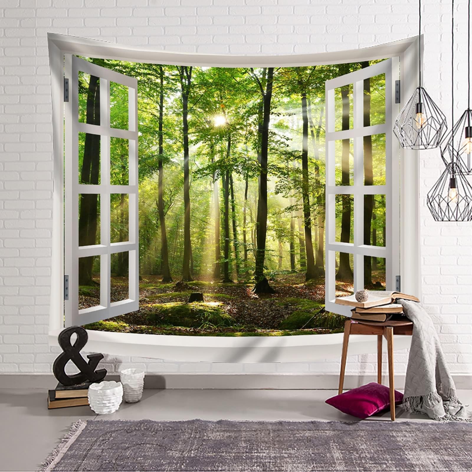 Décoration Salon Chambre Polyester Tenture Murale Nature, Fenêtre Blanche Avec Paysage Forestier Décoration Murale Paysage Nature 150x130cm Le salon des tapisseries à Cheverny - Noblesse & Royautés Impression HD d'une fenêtre ouvrant sur une forêt naturelle, couleurs vives et détails réalistes. Tissu polyester doux et léger, dimensions 150x130cm. Multi... Tenture murale multifonction: Cette décoration esthétique peut être utilisée non seulement comme tapisserie, mais aussi comme nappe, décoration murale, décorations de dortoir, draps de pique-, châles de plage, foulards, couvertures, housses de canapé, etc. Votre choix d’accroche murale d’art est un excellent moyen d’exprimer vos goûts personnels. Ajoutez un sens de l’esthétique à votre pièce. Facile à accrocher, adapté à une utilisation intérieure ou extérieure. Peut être cadeau pour l’action de grâce, la pendaison de crémaillère, Noël ou d’autres festivals. Facile à utiliser et à entretenir: Cette tapisserie est très facile à accrocher en utilisant des pinces décoratives, des punaises à pousser, etc. Veuillez le repasser à basse température. Nos tapisseries sont fabriquées à partir d'un tissu en polyester, ce qui leur confère un aspect élégant et une grande douceur au toucher. Grâce à une couture...