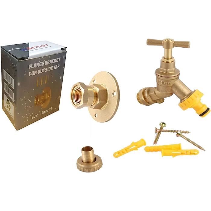 Robinet Laiton 1/2 Bride Murale Tuyau 15mm Cuivre Plastique Robinet De Jardin Extérieur 1/2 Avec Bride Murale Pour Tuyau En Cuivre De 15 Mm Ou Tuyau En Plastique De 15 Mm (robinet à Bavette En Laiton Robinet Inox Extérieur Brico Dépôt Robinet de jardin extérieur 1/2 double vérification avec Hep Kit robinet extérieur de jardin avec bride murale trante avec... Support à bride pour plaque murale Ce robinet extérieur peut être facilement monté sur la paroi extérieure et mis en position grâce au support à bride. Propre et pratique : notre produit donne une finition plus nette à votre robinet extérieur en cachant un tuyau dans un mur et en fixant votre robinet dans la bonne position Installation simple : l'installation d'un robinet n'a jamais été aussi facile. Fabriqué en laiton, il présente d'excellentes propriétés de durabilité – il ne se détériore pas en cas de chocs accidentels, d'humidité ou d'autres conditions météorologiques. Percez un trou dans un mur, tirez un tuyau à travers et connectez-le à la bride Universel : le support de bride peut être utilisé avec un tuyau en cuivre standard de 15 mm ou un tuyau en plastique de 15 mm (insert nécessaire) Détails de l'emballage : chaque colis comprend un robinet de votre choix et un support de bride de plaque murale Bride murale pour inox 304/316 | Téréva