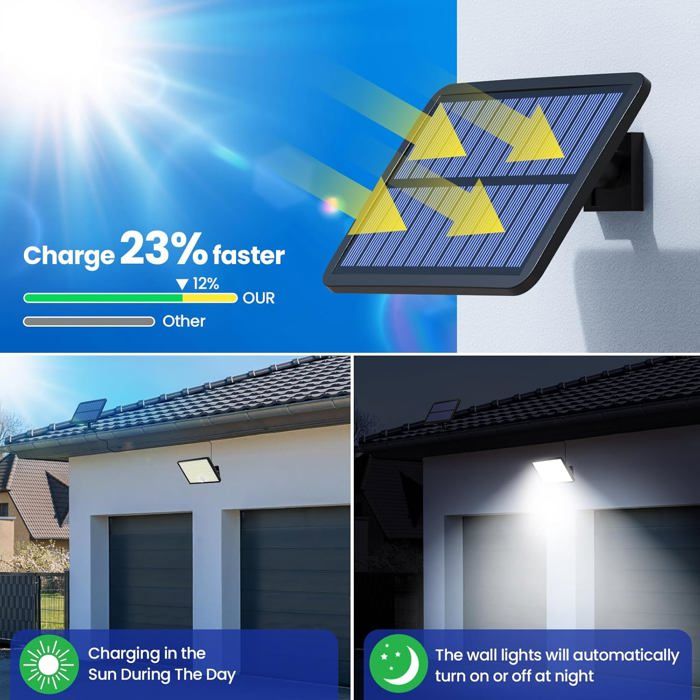 Applique Murale Solaires Lampe Solaire Exterieur Avec Détecteur De Profitez d'un éclairage d'ambiance et économe en énergie avec ces lampes solaires de qualité supérieure de Surplex. Kit Solaire Avec Support Clip TYLA Applique Murale Solaire D'extérieur LED Avec Détecteur De Mouvement 2700 K Ultra Efficace Lampe Pince Avec les deux options de montage, vous pouvez fixer les lampes selon vos besoins, soit avec le support à clip intégré ou directement sur le mur. Éclairage lumineux: Cette lampe à capteur de mouvement solaire à clip est équipée de 36 LED de pointe qui peuvent éclairer de vastes zones allant jusqu'à 50 pieds carrés tout en fournissant 1 000 lumens de lumière vive Capteur de mouvement à 3 modes : les lampes solaires offrent trois options d'éclairage : capteur puissant, gradation et intensité constante. Le détecteur de... Respectueux de l'environnement économique : avec une batterie de 1500 mAh, ces lampes se chargent complètement en 5 à 6 heures de lumière du soleil et offrent 12 heures de luminosité, idéales pour une utilisation toute la nuit. Capteur de mouvement à 3 modes : les lampes solaires offrent trois options d'éclairage : capteur puissant, gradation et intensité constante. Hauteur recommandée : 4,9 à 8,2 m pour une utilisation optimale. Les lampes disposent de 36 LED lumineuses et offrent trois modes d'éclairage différents, ce qui vous permet de créer l'atmosphère souhaitée. Le détecteur de mouvement détecte les mouvements à moins de 120 degrés et éclaire efficacement la zone. Avec ce paquet, vous recevrez deux lampes solaires robustes avec détecteur de mouvement qui s'intègrent parfaitement dans votre environnement.