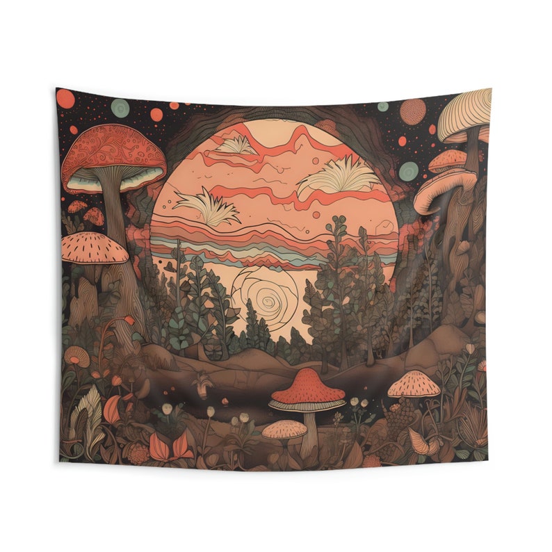 PLIGREAT Lot de 2 tapisseries murales verticales bohèmes avec motif de Décoration Lune Champignons Botanique AUEEA Tapisserie Murale Vintage Champignon Pour Chambre à Coucher Tapisserie Murale Boho Tenture murale de Mandala en forme de champignon,tapisserie... Botanical Pattern Design: Our exquisite tapestry is designed in moon mushroom pattern, the floral plant style will decorate your room more stylishly and bring lasting visual pleasure to your home Tapisserie a coller,Tapisserie murale suspendue style Mandala indien... Premium Wall Tapestry: Made of high-quality polyester fabric, soft and not easy to fade, high-definition printing technology makes the pattern clear and delicate; it is recommended to wash it gently with cold water and dry it in a cool place Tapestry with Tassels: The total length of the tapestry with tassels is 52 inches/130 cm, the width is 13 inches/33 cm, and the wall tapestry with tassels is elegant and generous