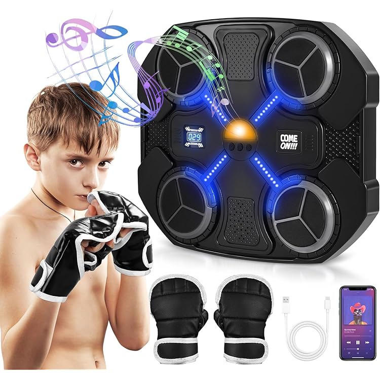 La surface de frappe est en gel doux et agréable pour la peau, remplie d'éponge haute élasticité, ce qui la rend résistante à l'usure, à la pression et aux chocs. Machine de boxe musicale Connexion Bluetooth 1200mah Chargement USB... Pour un temps de jeu continu. Les haut-parleurs intégrés et les lumières LED rythmées créent une ambiance de combat immersive, transformant l'exercice en une soirée dansante palpitante. Punching Ball Mural Enfants Machine De Boxe Musicale Bluetooth Intelligente, Boxeur Musical Mural Avec Lumiere Led Equipement De Boxe Bluetooth Pour Enfantsadultes Cible De Boxe Murale Avec Gants De Boxe 85451698 Machine De Boxe Musicale Enfant 🔋 [Rechargeable par USB durable et installation facile] Pas de câbles ni de piles encombrants ! Caractéristiques techniques : Matériau : ABS, plastique, composants électroniques. Le tapis de boxe mural est durable et ne blessera ni les mains ni les poignets, garantissant un entraînement intensif. L'installation est facile et se fixe solidement au mur. Mesurez simplement les dimensions, fixez les bandes Velcro résistantes au mur, puis fixez le tapis de boxe. 🥊 [Boîte à musique Bluetooth intelligente] Ce boxe mural musique se connecte à votre téléphone via Bluetooth pour diffuser les morceaux de motivation préférés de votre enfant ! C'est la boîte à musique idéale pour un entraînement cardio amusant, adapté aux enfants. Machine de boxe musicale pour enfants fixée au mur, noir, avec gants de Temps d'utilisation : plus de 120 minutes. La hauteur de cette machine de boxe est facilement réglable, ce qui la rend adaptée aux enfants. 💪 [Un excellent exercice physique et un excellent développement des compétences] Ce machine de boxe est plus qu'un simple jouet ; c'est un outil de fitness fantastique !