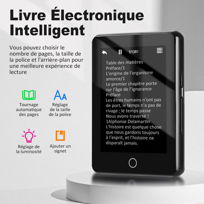 Le téléchargement est facile. Lecteur Musique Portable Radio FM Enregistreur Lecteur De Musique HiFi Sans Perte, écran Tactile De 1,8 Pouces Lecteur Vidéo MP4 à Technologie MP3 Enregistreur Vocal Livre Audio Spécifications: Type d'article: lecteur de musique Matériel: ABS Batterie intégrée: Batterie Li 150mah Format musical: Support MP3, WMA, OGG, Apeflac, WAV et autres formats Format vidéo: Support AMC (vidéo converti) Format Fonction d'image: Support JPG, JPEG, BMP, Format gifFormat Fonction radio: Support Radio Fonction d'enregistrement: prise en charge de l'enregistrement Bluetooth: Bluetooth 5., 0 petite carte mémoire: support jusqu'à 64 Go (exclu) Comment utiliser: POSE ET UTILISATION. Face à la pléthore d’appareils qui inondent le marché, le choix peut vite virer au casse-tête. Trouvez donc votre bonheur parmi notre sélection des meilleurs lecteurs mp3 du moment 【Multifonctionnel】: Ce lecteur MP3 présente la musique, l'enregistrement, la radio FM (nécessite des écouteurs filés pour être branchés), la vidéo (nécessite un outil de conversion pour convertir la vidéo), le lecteur de livres électroniques et plus encore. 【Compact et portable】: Il est léger et portable, peut être facilement mis dans les poches et les sacs à dos pour profiter de la musique n'importe où. Lecteur MP3 avec Bluetooth, Lecteur de Musique HiFi Portable de 1,8... Veuillez noter que la fonction Bluetooth ne prend en charge que le casque Bluetooth et la connexion du haut-parleur Bluetooth. 【Hi Fi MP3 Player】: Il a une puce de décodeur de son intégrée puissante pour mieux convertir le code source au son le plus original, en garantissant la qualité du son de Hi Fi, et prend en charge MP3, WMA, OGG, Apeflac, WAV et d'autres formats. C'est le compagnon d'entraînement idéal. Lecteur p3 Bluetooth, 80Go Lecteurs P3 et P4 avec WiFi, Oilsky 4.0 Profitez de votre musique sans vous soucier du signal Bluetooth intermittent. 【Slim Design, facile à utiliser】: Le lecteur de musique est conçu avec des boutons classiques et une navigation simple.