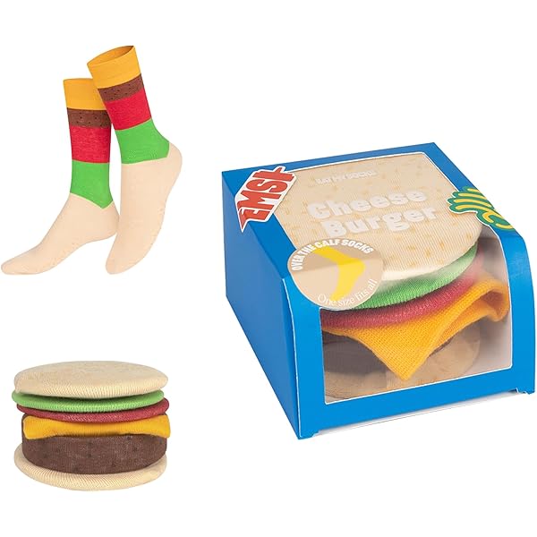 Cette fois-ci, nous voulons vous ravir avec nos chaussettes inspirées de recettes irrésistibles, présentées sous la forme d'un délicieux cheeseburger. Chaussettes Fun Unisexe Taille Unique Eat My Socks - Chaussettes Originales | Fabrique De Styles Chaussettes Humoristiques De plus, nos tailles vont du 36 au 45, s'adaptant ainsi à tous les pieds. Sortez du quotidien et rappelez-vous : la surprise commence avec notre emballage ! Sa conception vous invitera à remettre en question la réalité, car rien n'est ce qu'il semble être. À PROPOS DE EMS : Nous créons des chaussettes uniques qui prennent la forme inattendue d'objets et d'éléments, conçus pour surprendre. Eat My Socks - Chaussettes créatives et avant gardiste Chaque paire de chaussettes a été conçue pour vous surprendre. Aussi créatives qu'alléchantes, ces chaussettes ajouteront du fun et de l'originalité à vos tenues ! En outre, ils sont présentés dans une boîte en papier avec un pelliculage en pulpe de bois et un PET 100 % recyclé et recyclable. EMBALLAGE RECYCLE : Ils sont présentés dans un emballage qui comprend une boîte en papier avec un laminage en pulpe de bois et du PET 100 % recyclé et recyclable. Notre objectif est d'offrir une expérience créative et unique. Dans nos collections, vous trouverez des formes créatives, des délicieux hamburgers et des crêpes alléchantes aux designs amusants qui éveillent l'imagination Ces chaussettes mi-hautes sont disponibles en tailles 36-40 et 41-46, offrant un ajustement parfait pour tous. Confectionnées avec des matériaux de haute... Dans nos collections, vous trouverez des formes créatives, des hamburgers délicieux aux crêpes alléchantes, en passant par des motifs amusants qui stimulent l'imagination. Notre mission est claire : ajouter du plaisir à votre style, vous encourager à exprimer votre personnalité et promouvoir l'idée que la mode n'a pas de sexe. C'est le choix idéal pour impressionner et ajouter de la joie à n'importe quelle occasion. Notre passion est de créer des chaussettes authentiques et surprenantes pour vos pieds, où rien n'est ce qu'il semble être.