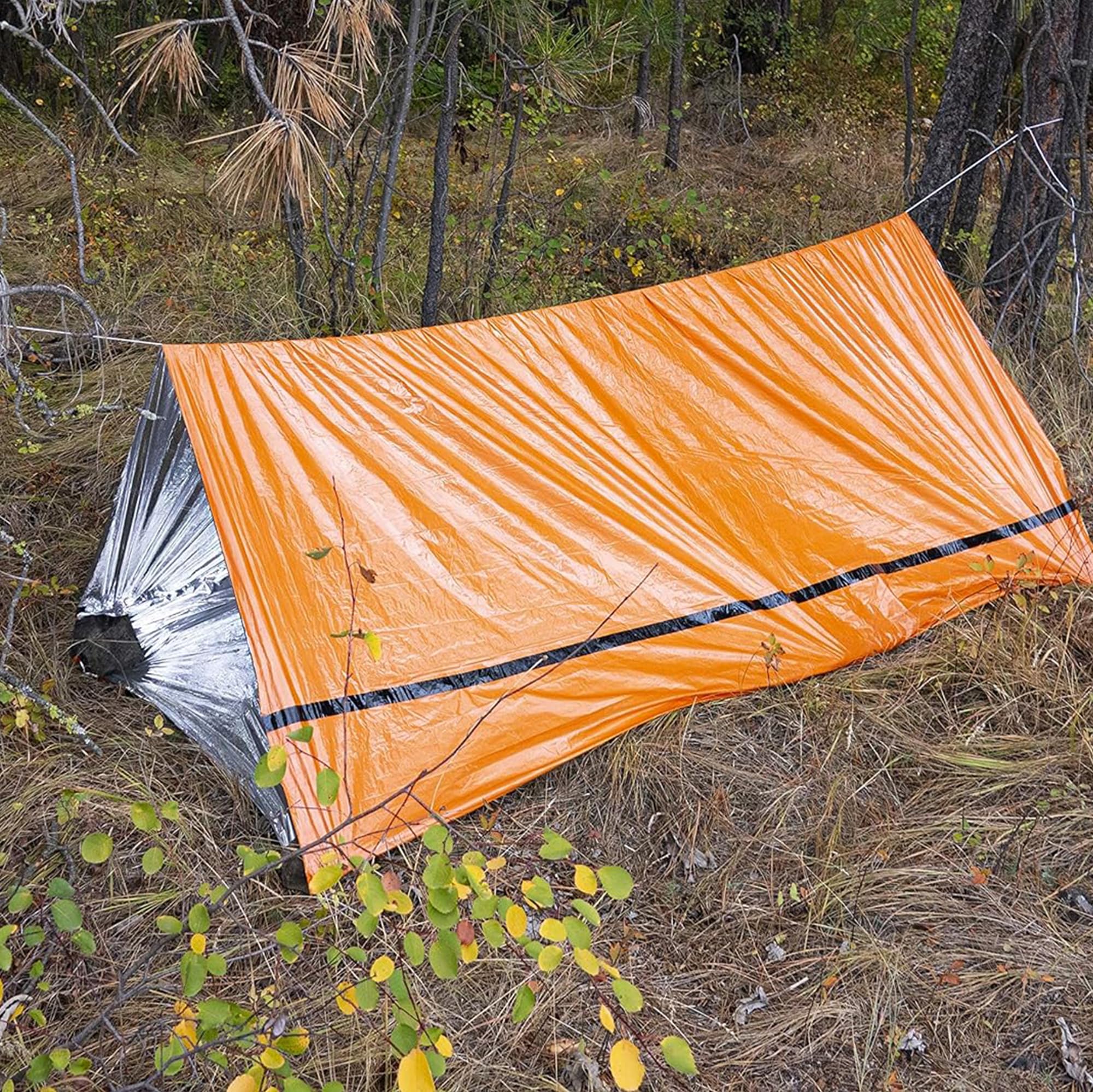 Cet abri d'urgence + sac de couchage d'urgence + couvertures d'urgence sont ce dont vous avez besoin pour vous aider lorsque vous êtes coincé., 2., Un must pour tous les sacs anti-insectes : protégez vous et vos proches en ayant l'un de ces kits dans l'ensemble de vos kits de survie, sacs anti-parasites, kits de tremblement de terre, kits de 72 heures., 3., Design et matériaux de qualité supérieure : léger et résistant – Le Mylar reflète la chaleur corporelle dans la tente par temps froid et réfléchit la lumière du soleil par temps chaud. équipement Secours Outdoor Tente D'urgence 2 Personnes + Sac De Léger, compact et portable. Abri Survie Urgence Abri De Survie Compact « Abri Thermique Mylar 2P | Étanche | 150x250cm | Urgence, Randonnée Couverture De Survie Portable Imperméable Contenu de l'emballage : 1., Tente d'urgence 2., Corde de 6 m., Remarque : 1., Soyez prêt pour les situations d'urgence. Ils sont assez durables pour une utilisation répétée. Tente tubulaire d'urgence : cette tente de camping est livrée avec un abri thermique en mylar pour 2 personnes de 59 x 94,4 pouces/7,87' x 5', de grande taille... Application : tente réutilisable facilement pour la randonnée, la course, le camping, les trousses de premiers secours en voiture Conçu pour être votre couche de protection contre les intempéries, l'intérieur réfléchit jusqu'à 90 % de la chaleur de votre corps pour vous garder au chaud, au sec et protégé des éléments Abri de survie : Techniques de construction | Urgence-survie Abri thermique en mylar pour 2 personnes : il est livré avec un abri thermique en mylar pour 2 personnes de 150 x 250 cm, de grande taille pour soutenir une protection complète du corps., Pratique et pratique. Il peut être utilisé comme cabane de survie d'urgence Facile à installer et à transporter : séparez la corde et l'abri, passez la corde à travers les deux extrémités et attachez-la à un objet robuste. Adoptée le même matériau thermique en mylar, cette tente est conçue pour refléter 90 % de la chaleur corporelle et vous assurer de rester au chaud, au sec et en sécurité, peu importe ce que mère nature vous lance. Conçu pour les aventures en plein air à ranger ultraléger et compact