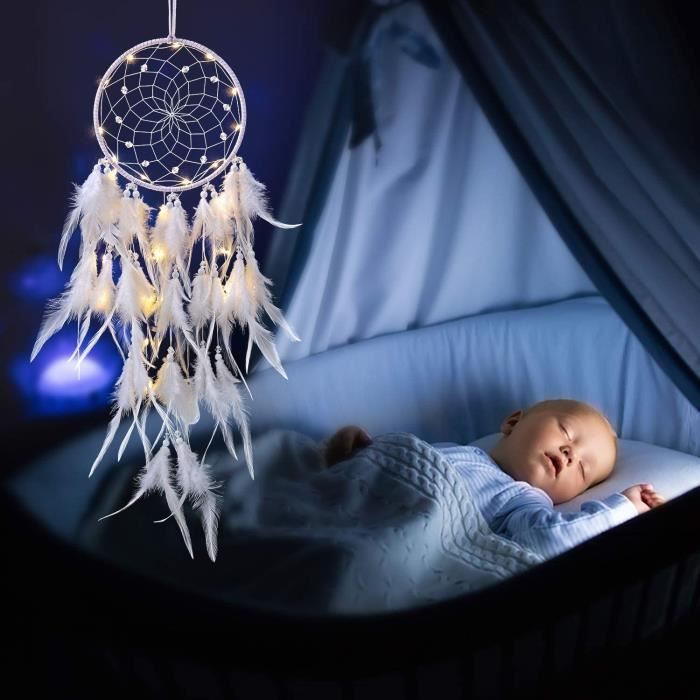 Décoration Murale Chambre Fille Kathévan Néon LED Lampe Licorne Lampe Attrape-rêves Led Plumes Roses Chambre Fille EQLEF Attrape Reve Rose, Papillon Dream Catcher Tenture Murale Plume Dreamcatcher Fairy Net Ornement pour la Décoration de Mariage de Chambre à Coucher Un excellent cadeau pour vous, la famille, les enfants, les amis, ou quelqu'un a des cauchemars ou ont peur du noir, etc. Elle est fabriquée à la main en laine confortable, doux coton, plumes véritables, perles de bois tournants LED guirlande lumineuse. Capteur De Rêves en Plumes,avec lumière LED Decoration Chambre Fille... Il peut être la lumière jusqu à la tombée de la nuit pour créer une ambiance calme et farily, aide à quelqu'un pour fournir un son sommeil, protège contre les cauchemars et sombre. Diamètre des anneaux est de 11 cm, la longueur est de 24 cm, est livré avec un interrupteur marche/arrêt et alimenté par des batteries piles boutons (fournies). Un beau cadeau pour la famille, les enfants, les amis, ou quelqu'un a des cauchemars ou ont peur du noir, etc., ., Contenu de l'emballage 1 x rose LED light up Dream catcher pour décoration de chambre de fille C'est une amulette puissante, capable d'offrir une bonne sommeil au propriétaire, protège contre les cauchemars et sombre.