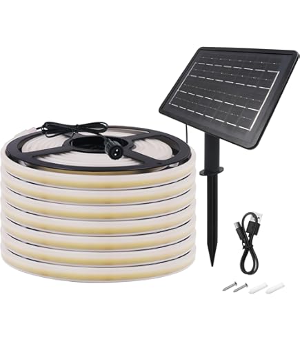 Ruban LED Extérieur Solaire 24V DC SMD2835 60 LED/m 30m IP65 Largeur 12mm Coupe 100 cm ★ Puissance du solaire : avec un panneau solaire ajustable, les bandes LED néon peuvent absorber efficacement l'énergie solaire et la convertir en énergie électrique. Ruban Néon Solaire 10m IP65 8 Modes Jardin HEGEHE 24V Ruban LED Néon Solaire Extérieur, 2835 120 LEDs/m IP65 Étanche Lumineuse Solaires Bandeau LED Light Strip Avec 8 Modes Pour Cour Extérieure, Jardin, Décoration De Fête (Blanc, 1M Bande LED Solaire Extérieure Liste d'expédition : 1 x bande de LED néon solaire Ruban Led 20M, 24V 3000K Néon Blanc Chaud Dimmable Bande Led Lumineuse... 24V Ruban LED néon Solaire Extérieur, 2835 120 LEDs/m IP65 Étanche Lumineuse Solaires Bandeau LED Light Strip avec 8 Modes pour Cour extérieure, jardin... Veuillez sceller la queue de la bande lumineuse avec un adhésif imperméable ou un bouchon avant utilisation. ★ 8 modes d'éclairage : avec un capteur de lumière intégré, la guirlande LED s'allume automatiquement la nuit et s'éteint automatiquement le jour. ★ Remarque : la satisfaction de nos clients nous tient à cœur - en cas de problèmes ou de remarques, nous nous réjouissons de recevoir votre message. 5 Choisissez un sol mou pour appuyer sur la pointe afin de trouver la lumière. Vous pouvez appuyer sur le bouton à l'arrière des panneaux solaires et régler 8 modes différents selon vos préférences : Combinaison, In Wave, Séquentiel, Slo Glo, Chasing/Flash, Slow Fade, Twinkle/Flash et Steady On, ce qui donne de l'esthétique à votre intérieur. Spécifications du produit : Mode:8 modes Longueur totale:1-10m Tension de fonctionnement : 24V Puissance : alimenté par énergie solaire 1,3 W(0., 5m-2m), 2,8W(3-5m), 6W(6-10m) Longueur de ligne : 1., 2M Le nombre de LED:120LED/M Interrupteur:marche/arrêt et 8 modes Résistance à l'eau : IP65(s'il vous plaît ne pas complètement dans l'eau) Veuillez noter : 1 la lumière est conçue pour une utilisation extérieure uniquement dans un endroit ouvert pour recevoir la lumière directe du soleil., 2., les batteries rechargeables au nickel-hydrure métallique intégrées transfèrent l'énergie directement au tube lumineux par des capteurs solaires.