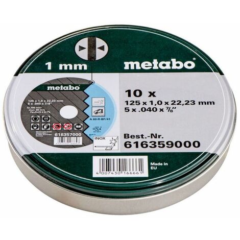 Metabo Plateau abrasif 125 mm, « multi-hole », dureté moyenne, sxe 150 METABO 626171000 - Disque abrasif pour tôles céramiques CER, droit, grain 125 mm, P80 : : BricolageRetours & garanties légales: Demandez le retour d'un produit jusqu'à 14 jours après sa réception, sans motif, pour obtenir un remboursement complet (prix et frais de livraison) au titre du droit légal de rétractation. permet en plus les retours jusqu'au 30ème... Disque Pour Meuleuse D'angle Disque Abrasif Non Tissé Expert N477 Scm D 125mm Grain Moyen Bosch 2608901270 778478 Disque De Poncage 125mm Metabo 626171000 Disque abrasif à lamelles 125 mm - P80 CER Description Le grain céramique auto-affûtant permet d'obtenir des taux d'enlèvement extrêmement élevés sans grand effort. Excellents résultats lors du ponçage de l'acier et de l'acier inoxydable. Grâce à sa capacité de charge élevée, il convient parfaitement aux travaux de ponçage et de meulage... Convient pour le meulage grossier et intermédiaire dans tous les domaines de la métallurgie, y compris l'acier inoxydable, l'acier, la fonte et la tôle d'acier METABO 626307000 - Cinta de lijar de corindón de circonio grano P 120 (Envase de 10 Ud)