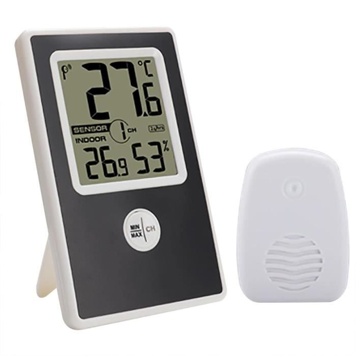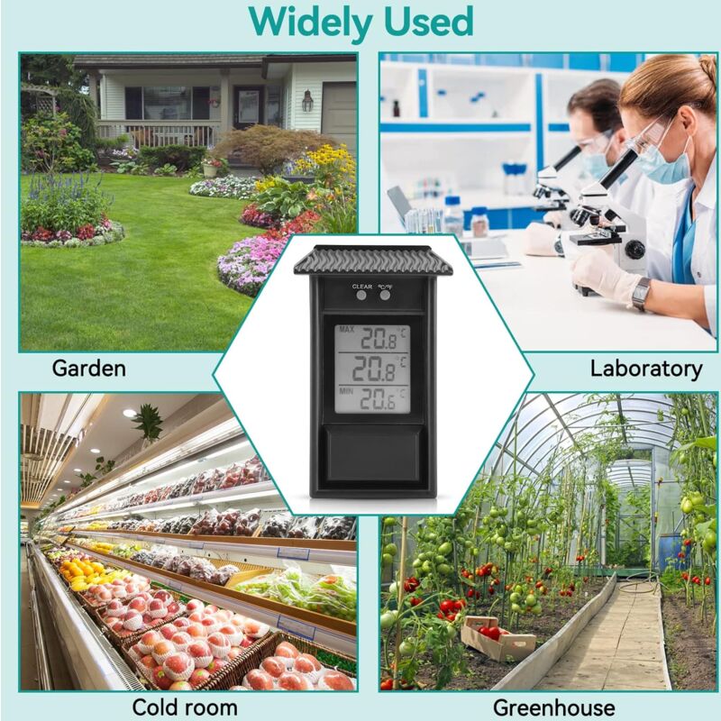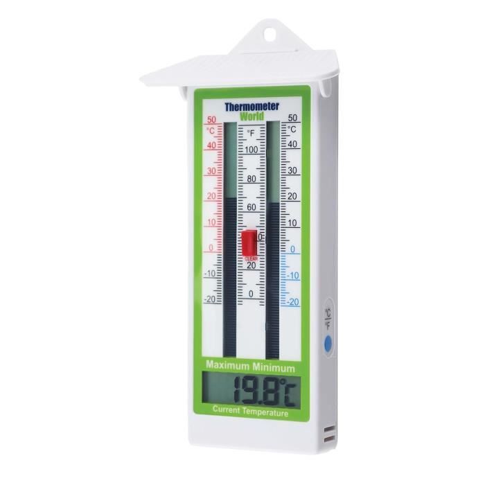 Dimensions : 132 x 80 x 30 mm. Serre Interieur NA Thermomètre Numérique Pour Serre – Thermomètre Max Et Min Pour Surveiller Les Températures Maximales Et Minimales,accessoire De Serre Mural Pour Thermomètre Mémoire Température Blanc Affichage numérique : le thermomètre de jardin dispose d'un affichage numérique qui affiche les mesures de température les plus élevées, les plus basses et actuelles. Résolution de la température : 0,1 ℃. Contenu de l'emballage : 1 thermomètre (2 piles AAA non incluses). Utilisation polyvalente : ce thermomètre peut être utilisé à la fois à l'intérieur et à l'extérieur, ce qui le rend adapté pour la maison, le jardin ou la serre. Thermomètre Intérieur Extérieur, Thermomètre Connecté Avec 3 Capteurs Sans Fil Surveiller Humidite Et Temperature Enregistrer Max Min Affiche Indications De Tendance Et Confort 90519077 * Peut être utilisé à l'intérieur et à l'extérieur, pour la maison, le jardin ou la serre. Fonction de conversion Celsius Fahrenheit. Longue durée de vie. Plage de mesure de température : -20 ~ 50 ℃. Surveillez les variations de température dans différents environnements avec facilité. Thermomètre de Serre de Jardin, thermomètre Max-Min de Plantation extérieure numérique pour Le... Utilisable en intérieur comme en extérieur - parfait pour la maison, le jardin, la serre, etc. Il mémorise les valeurs min/max, donc tu peux voir les variations... * L'affichage numérique du thermomètre le plus haut et le plus bas du jardin indique la température élevée, basse et actuelle. * Finitions soignées et bonnes performances., Facile à utiliser. Thermomètre numérique d'extérieur étanche Mémoire de la valeur de température maximale et minimale Précision de la température : +/-1 ℃. Caractéristiques : * * Étanchéité IP45, la fente de la batterie a également une structure étanche simple.