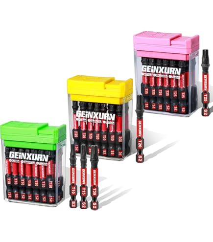 Chaque bord peut saisir la vis avec précision, la stabiliser sans glisser et améliorer l'efficacité du travail. Embouts Torx T7 T8 T9 T10 T15 T20 T25 T30 T40 NAKESHOP Embouts De Vissage Magnétiques, Asixx 50mm Embouts De Embout Torx Prix Ces embouts renforcés sont spécialement conçus pour supporter les couples élevés des visseuses à percussion modernes. Conçu en acier et compatible avec tout type de douille, il permet d’éviter les dérapages grâce à sa forme d’étoile et peut être utilisé avec une visseuse ou un tournevis Embouts de Tournevis Torx: 90 Pièces 50 mm (T7x5, T8X5, T9x5, T10x10, T15x10, T20x15, T25x15, T27x5, T30x10, T40x10) embouts. Toutes les pièces embout sont livrées dans un étui de rangement sur mesure C62142 - Lot De 5 Embouts De Vissage 1-4'' À Empreinte Étoile T25 6... Extrémités renforcées offrant une résistance exceptionnelle pour un serrage/desserrage optimal. Durée de vie 10 fois supérieure aux embouts standards. Jeu d'Embouts pour Visseuse à Chocs: La zone d'absorption des chocs résiste aux pilotes d'impact. Lot de 11 ebouts de tournevis Torx 100 - 1/4 T6-T40 - Longue Embouts certifiés pour visseuses à percussion Zone d'absorption des chocs spécialement conçue pour résister aux couples élevés. Acier Allié S2: Sets d'embouts de Vissage grâce à un traitement thermique rigoureux, il a une dureté élevée, une bonne ténacité et une bonne résistance.