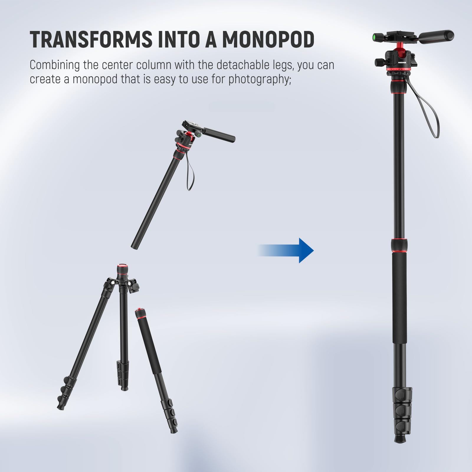 Doté de quatre sections réglables, le trépied s'étend jusqu'à une hauteur maximale de 184 cm et se replie à 67 cm. Neewer Mini Tête de Trépied - Rotule à Pas de Vis 1/4 Pouce, Rotation à Plateau de déclenchement. Trépied Aluminium 72 Pouces NEEWER Trépied Monopode Pour Caméra,Support De Montage En Camera Vlog La rotule panoramique à 360° est équipée d'une plaque de fixation rapide de type Arca et de deux niveaux à bulle pour une composition précise. Spécifications Modèle : N284+G0 Type d'article : Trépied Compatibilité : DSLR Appareil photo et caméscope Application : Photo et vidéo Caractéristiques principales : Colonne centrale flexible Points de fixation : 1/4 Matériau principal : Alliage d'aluminium Capacité de charge : 15 kg Hauteur maximale : 184 cm Contenu de l'emballage 1 x trépied avec rotule et colonne centrale 1 x clé Allen en L 1 x sac de transport 1 x mousqueton 1 x manuel d'utilisation 1 x chiffon de nettoyage Mini Monopode Mini Tige De Support De Montage De Bton De Selfie... 【Contenu de l'emballage】 1 x trépied avec rotule et colonne centrale, 1 x clé Allen en L, 1 x sac de transport, 1 x mousqueton, 1 x manuel d'utilisation, 1 x chiffon de nettoyage. 【Colonne centrale multi-angle】 La colonne centrale permet de régler l'angle de prise de vue, qu'il soit vertical (0°, 22,5°, 45°, 67,5° ou 90°) ou horizontal (panoramique à 360°). Neewer Rotule Panoraique étallique 360 Degrés Rotatif avec Plateau... Il est fourni avec un mousqueton permettant d'accrocher un sac de sable ou d'autres objets lourds pour une meilleure stabilité, ainsi qu'un chiffon de nettoyage et un sac de transport pour l'entretien et le rangement. 【Trépied ultra stable】Fabriqué en alliage d'aluminium, ce trépied, doté d'un tube de 28mm de diamètre maximum, est suffisamment stable pour supporter votre reflex numérique (compatible avec les appareils photo Sony, Canon et Nikon) et vos caméscopes jusqu'à 15kg. Vous pouvez également l'inverser pour prendre des photos macro. Sa colonne centrale polyvalente permet des angles de prise de vue réglables, notamment verticaux (0°, 22,5°, 45°, 67,5° ou 90°) et horizontaux (panoramique à 360°), et même réversibles pour la macrophotographie. 【Hauteur réglable】 Ce grand trépied en alliage d'aluminium à 4 sections avec verrous rotatifs s'étend jusqu'à une hauteur maximale de 184cm et se replie à 67cm.