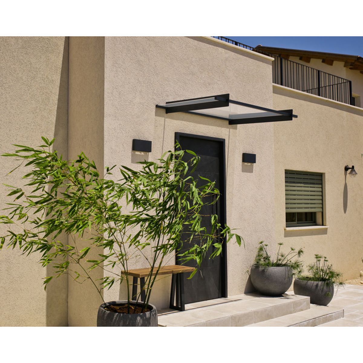 Le toit « Nancy 1500 » de couleur anthracite de Palram Canopia offre une solution parfaite et durable. Palram - Canopia Auvent Aquila 6150 Anthracite 92x615x18 cm Robuste et durable – protège contre les conditions météorologiques difficiles en toute saison Protection Entrée Maison 150x94 Cm Canopia Marquise De Porte Nancy Gris 150.5 X 94 - Gamm Vert Auvent Palram Canopia Nancy Cela vaut également pour l'entrée de votre maison. Il crée une entrée très conviviale, met en valeur l'entrée de votre maison et offre une protection contre le vent et les intempéries. Auvent porte en aluminium Sophia 1,6 m Palram - Canopia anthracite... Les profilés en aluminium résistant à la corrosion et un support en acier galvanisé et revêtu par pulvérisation garantissent la durabilité, le joint en caoutchouc caché Design fin : 004628501-0001 - Construction sans entretien Cette marquise de 94 x 150,5 cm est conçue pour protéger votre entrée des intempéries. Elle s’est vue dotée d’une structure en aluminium et acier galvanisé ainsi que d’un panneau en acrylique transparent. Livrée en kit, à installer soi-même Fabriqué à partir de matériaux de haute qualité, il vous apportera de nombreuses années de plaisir à chaque fois que vous êtes devant votre porte. Un joint caché à l'arrière aide à évacuer la pluie vers les côtés, de sorte que l'eau ne s'écoule pas sur le mur de la maison. Auvent moderne - Design épuré - Structure : anthracite Comme on le sait, cela dépend de la première impression. Plateau en polycarbonate transparent de 4 mm résistant aux chocs, protège contre les rayons UV nocifs