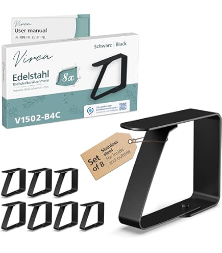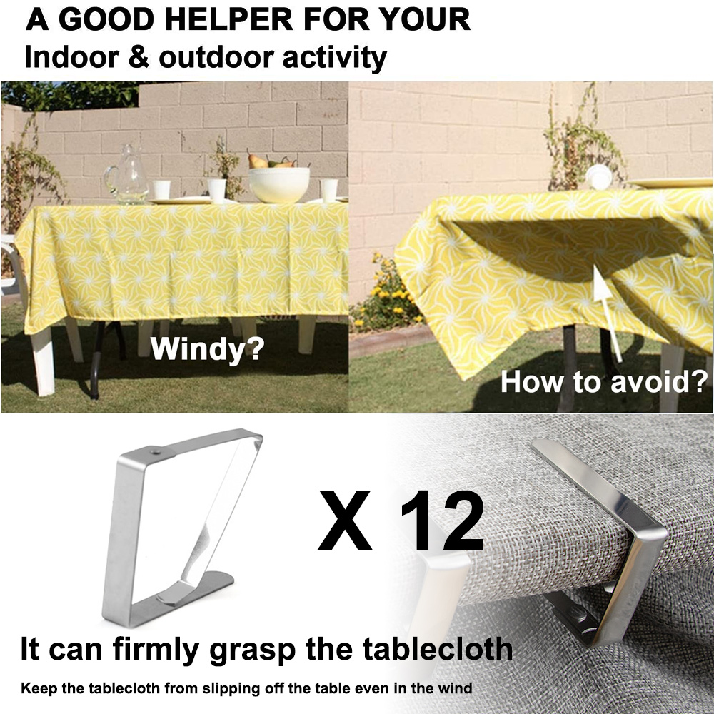 Leur design réglable assure un ajustement parfait, vous permettant de les adapter facilement à diverses tables, telles que les tables rectangulaires, les tables rondes de patio, les tables de camping, les tables carrées et les tables à manger portables extérieures. Évitez tout contact prolongé avec des produits chimiques agressifs ou de l'eau salée. Pinces Table Extérieur Intérieur Hahayoo Lot De 12 Pinces à Nappe En Acier Inoxydable Pour Table De Pinces Table Pique-nique Extérieur Lot de 4 pinces à nappe à clipser "Fer Blanc" - 4,8x4,8x1,5cm Nos clips de support de nappe offrent une prise en main ultra ferme et ancrent votre nappe fermement en place. Idéal pour les fêtes, les mariages, les pique-niques ou pour un usage quotidien. ✔ Ensemble pratique – 12 pinces incluses (6,5 x 5,5 cm chacune), assez pour les grandes ou plusieurs tables. Ils vous épargnent la peine de réajuster constamment la nappe, vous permettant ainsi à vous et à vos invités de vous concentrer sur profiter de l'événement en plein air sans aucune perturbation. Cela garantit une table propre et bien rangée tout au long de votre réunion, quelles que soient les conditions météorologiques. Principales caractéristiques : ✔ Solide et durable – Fabriqué en acier inoxydable pour résister à la rouille et à la corrosion, adapté pour une utilisation en intérieur et en extérieur. Il suffit de les fixer au bord de la nappe, et ils se fixent solidement à la table. ✔ Polyvalent – Fonctionne sur la plupart des tables (salle à manger, buffet, camping) et tissus (lin, polyester, vinyle). Acier inoxydable pour une utilisation durable : les pinces de table d'extérieur de qualité supérieure en acier inoxydable résistant à la corrosion (7,5 x 4,5 cm) convainquent par leur robustesse et restent visuellement impeccables même en cas d'humidité Très polyvalentes et adaptables : conçues dans un souci de flexibilité, ces grandes pinces de table peuvent accueillir des tables d'une épaisseur allant jusqu'à 4 cm. En outre, ils servent également de solution de suspension pratique pour ranger divers articles, vous aidant à libérer vos mains. ✔ Maintien sûr – Le design auto-réglable adhère aux bords de table jusqu'à 4 cm d'épaisseur, empêchant les glissements même en cas de vent. Heatigo Pince Nappe Exterieur,12 Pcs Pince à Nappe Antidérapante en