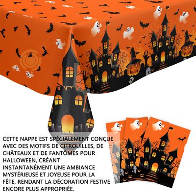 1 pièce, Nappe en plastique pour Halloween heureux - Motif château fantôme citrouille araignée, nappe jetable orange noire pour les décorations d'Halloween festives 2025, décoration de maison et d'extérieur saisonnière, décoration de fête d'automne, fête, événement, rassemblement, décoration de table de cuisine et de salle à... Les détails du produit · Couleur: Noir/blanc | · Matériau: Plastique | · Dimensions du produit: 132,1L x 221La centimètres | · Forme Nappe Halloween Dentelle 1 Pièce, Nappe En Plastique Pour Halloween Heureux - Motif Halloween Nappe Nappe d'Halloween, lot de 2, 54'' x 108, nappe jetable, nappe