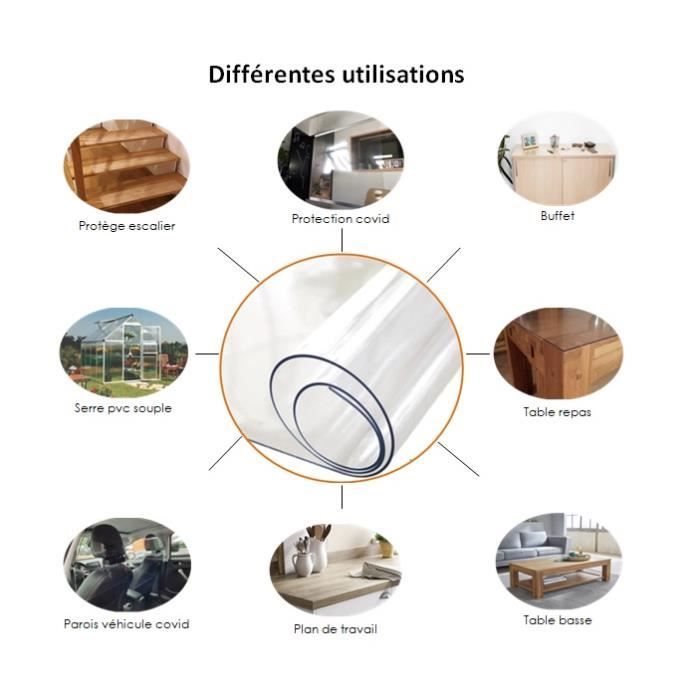 Transparence : le plastique vitreux offre une transparence optimale, ne cache pas les motifs ou textures délicats de la table. La sécurité est augmentée dans la maison. Nappe Imperméable 2mm Nappe Transparente Imperméable.film De Protection Pour Table En Pvc.épaisseur 1mm.70x120cm Film PVC Protecteur Table 40x95cm TransparentNappe Transparente Épaisse 2Mm De Protection Nappe... Le film de table est coupé directement du rouleau pour vous. Nappe plastique transparente : PVC doux respectueux de l'environnement Protège la table 2 mm d'épaisseur. Entretien facile : Grâce au film protecteur transparent, votre table reste toujours propre. Sinon, des bulles apparaîtront Nous coupons généralement un peu plus grand que la taille réelle pour éviter le rétrécissement. Propriétés des matériaux de haute qualité : les deux côtés sont également transparents. Le film ne convient pas aux surfaces brillantes (verre et vernis). Évitez également toute chaleur excessive. Cette nappe cristal protege table transparent est livree non pliee. Pour la recouper à votre table : un cutter, laisser la lame longue et découper le cristal en vous servant des bords de table comme guide De légères différences de taille ne sont pas un problème de qualité. En cas de besoin, il est recommandé de l'utiliser avec une nappe sur un bureau lisse. Tenir à l'écart des couleurs directes, de l'encre et des produits chimiques. Meilleures nappe transparente épaisse 2mm - Octobre 2025