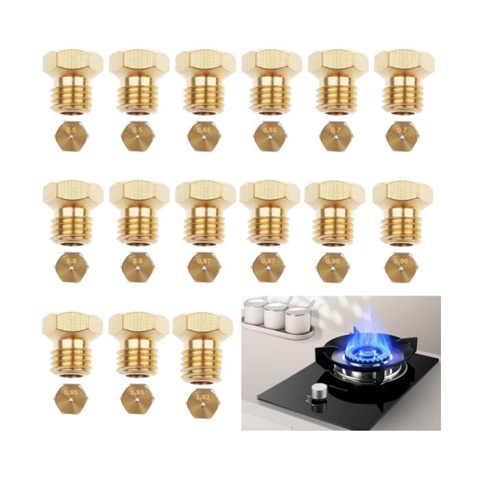 Comme la conversion au gaz naturel dans la cuisine. Injecteurs Laiton Plaque Cuisson Gaz 5 Pcs Gicleur Gaz Butane Universels Pour Plaque De Cuisson Au Gaz Naturel GPL, Jets, Buses Et Injecteurs, 1 De 0,5 Cm, 2 De 0,7 Cm, 1 De 0,87 Cm, 1 De 1,02 Cm Buses Remplacement Facile Sans Outil Haute fiabilité, résistant à l'usure, économe en carburant, facile à utiliser et résistant à la corrosion. Sachet Injecteurs Gaz Naturel 00620118 Pour TABLE DE CUISSON Durée de vie prolongée. 【Choix Multiples】Notre injecteur gaz butane dispose de quatre modèles tels que 2* 0,5/0,7/0,8/0,9/0,95/1,1, ces buses ont toutes la même taille de filetage mais des diamètres de trou différents. 12Pcs Gicleur gaz Butane Universels pour plaque de cuisson au gaz naturel GPL, jets, buses et injecteurs 2x (0.5 0.7 0.8 0.9 0.95 1.1) · Copper · 4,54,5 sur 5... 【Matériaux de haute qualité】le trou de jauge principal des pièces de buse de carburateur modifiées est fabriqué en laiton de haute qualité, qui est résistant à l'usure, a une ductilité à haute température et une faible perméabilité magnétique. Quantité : 2 buse de 0,5 mm., 2 buses de 0,7 mm., 2 buse de 0,8 mm., 2 buse de 0,9 mm., 2 buse de 0,95 mm., 2 buse de 1,1 mm. 【Facile à Installer】Remplacement rapide et sans outil des anciens injecteurs, permet l'utilisation de bouteilles GPL de différentes marques. Plaque de verre pour Table de cuisson DOMETIC 105313627 Spécifications : Matériau : cuivre Taille : comme indiqué Couleur : Or Pour l'utiliser il se pose simplement sur le carburateur.