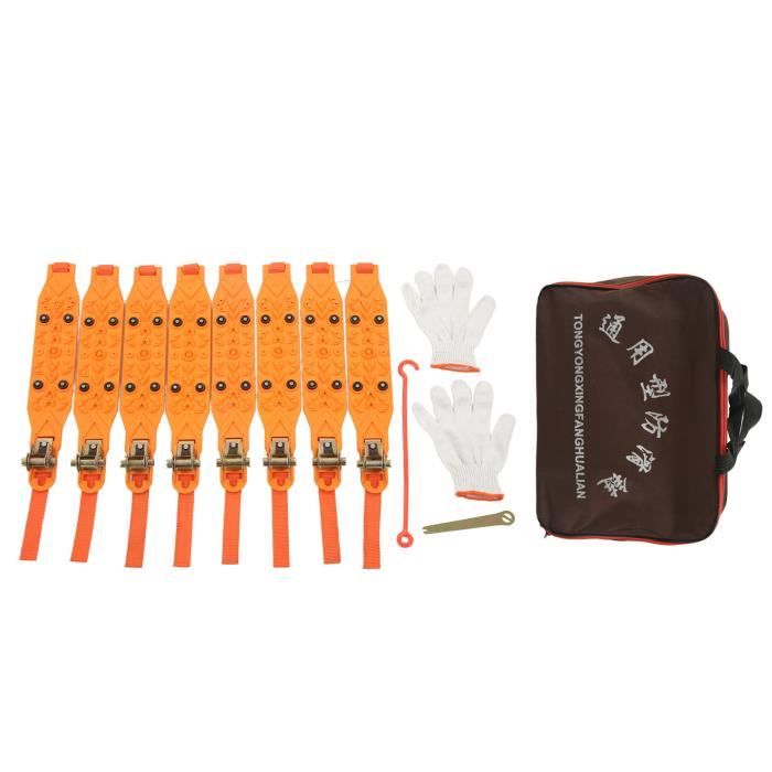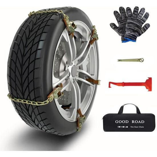 Chaine Neige Neuve Chaînes à Neige, 10 Pièces, Antidérapantes, Chaînes à Neige Chaussettes Voiture Neige Disponibles en différentes tailles pour s’adapter à tous les pneus, ces chaînes sont faciles à utiliser et vous rendront de nombreux services pour vos déplacements dans les régions de montagne. met à votre disposition un grand nombre de modèles à un bon rapport qualité-prix 10pcs Chaînes à Neige universelles pour Voitures/SUV/Camion LT Matériau de haute qualité : Fabriquée en nylon de haute qualité, cette chaîne offre une résistance mécanique élevée, un point de ramollissement élevé, une excellente résistance à la chaleur, un faible coefficient de frottement, une résistance à l'usure, une absorption des chocs et une réduction du bruit. Chaînes à neige antidérapantes (16 pièces), universelles pour pneus 165-265, pour une utilisation extérieure en cas d'urgence sur neige et verglas. Vendu par... Cette conception mécanique rationnelle augmente la friction entre le pneu et le sol, offrant d'excellentes propriétés antidérapantes. Leur taille compacte signifie qu'ils n'occupent pas d'espace dans le coffre, ce qui les rend faciles à transporter et prêts à être utilisés dans les zones urbaines ou les zones rurales montagneuses. Installation facile : Retirez simplement la chaîne du trou du pneu, insérez-la dans le trou de montage, retirez-la du trou de montage et installez solidement la chaîne de rechange. Lot de 8 colliers de serrage antidérapants pour pneus de voiture d'hiver - Chaînes à neige antidérapantes pour pneus de voiture - Réglables et antidérapantes