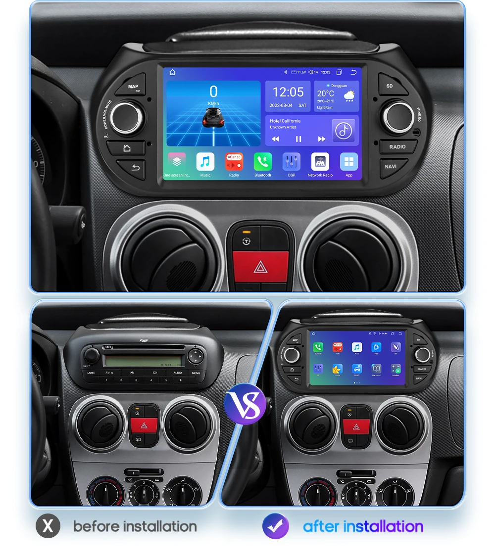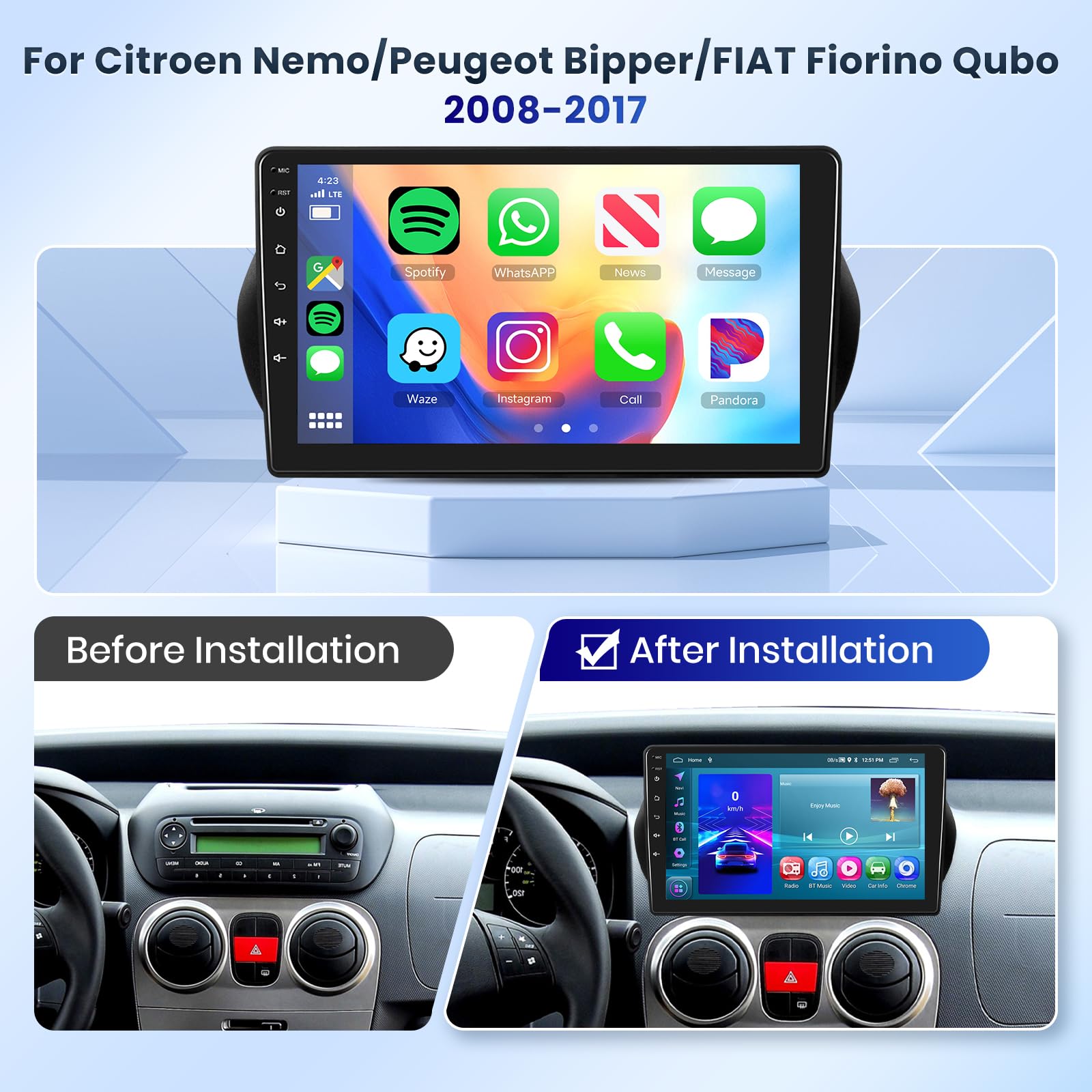 GPS WiFi 4Go RAM 64Go Autoradio 10 Pouces Autoradio Android 13 NHOPEEW - 10 Pouces CarPlay, GPS, Caméra Recul Autoradio GPS Caméra Recul Intégrée Citroen Nemo Autoradio tactile GPS Bluetooth Carplay Android Auto Citroën Nemo 2008-2017 2G 64G Sans Fil Carplay Android 13 Autoradio 2 Din Pour FIAT Fiorino/ Qubo / Citroen Nemo/Peugeot Bipper 2008-2017 10 Pouces Autoradio Avec Android Auto GPS... Si vous n'êtes pas sûr que votre voiture puisse être équipée, demandez-nous Écran tactile IPS de 10 pouces:Cet écran tactile capacitif IPS de 10 pouces 1280*720P vous offre un écran plus grand et plus clair, vous procurant une merveilleuse expérience visuelle. Pendant ce temps, 4GB RAM + 64GB ROM à Android autoradio, prend en charge l'écran partagé, la navigation GPS, le WiFi, le microphone externe, la commande au volant SWC, la météo mondiale et la voix intelligente Avec le système d'exploitation Android, vous pouvez accéder à une large gamme d'applications à partir du Play Store. CarPlay sans fil et Android Auto:L'autoradio de remplacement pour Citroen Nemo/Peugeot Bipper/Fiat Fiorino Qubo intègre CarPlay sans fil/câblé et Android Auto sans fil/câblé pour une commande vocale supérieure et un accès plus facile aux fonctions de votre téléphone, y compris la musique, la navigation, les appels, les notifications, les messages et plus encore, garantissant une expérience de conduite sûre 32EQ DSP et commande au volant:La radio Android de 10 pouces dispose d'un 32EQ DSP intégré et d'une variété d'effets musicaux à choisir. Le système de réglage professionnel vous permet de profiter pleinement de la musique et vous offre une satisfaction à 100%. L'écran tactile IPS de 10 pouces permet un multitâche à écran partagé, prenant en charge 2 applications à la fois. [CarPlay et Android Auto Sans Fil / Câblé]La autoradio Citroen Nemo prend en charge CarPlay et Android Auto sans fil et avec fil