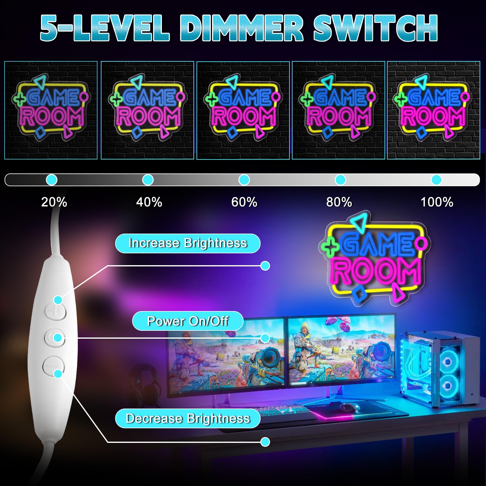 Jeu sur enseignes au néon néon console de jeu LED enseignes au néon pour décoration murale lumières de Bar salle de jeu chambre décoration lumières Très colorée et bien faite : notre applique murale de jeu est fabriquée en acrylique dur robuste transparent (non pliable) et une bande de silicone flexible respectueuse de l'environnement, qui a une grande transparence. Led Gaming Neon Gamepad Neon LEDAlimenté Par USB Enseigne Lumineuse Decor Gaming Cool Néon Pour Chambre Salle De Jeux Bar Cadeau Décoration De Fête | Leroy Merlin Panneau Néon Personnalisable USB Alimentation USB : le panneau LED de jeu est alimenté par USB et peut être connecté à une prise, un ordinateur ou un chargeur de téléphone portable. Un néon dans une chambre d’ado, c’est bien plus qu’un simple éclairage : c’est une signature. Que votre ado soit fan de gaming, de musique, de sport ou de citations inspirantes, nous avons un modèle de LED qui colle parfaitement à son style Le panneau néon LED dispose d'un cordon d'alimentation de 200,7 cm, avec interrupteur marche/arrêt et la luminosité peut être ajustée, vous pouvez accrocher le... Décoration murale et cadeaux fantastiques : l'applique murale LED illumine fantastiquement la chambre et est du plus bel effet sur le mur. Les lumières sont très lumineuses et merveilleusement éclairées en arrière-plan, et ne chauffent pas. Cette lampe de jeu néon est parfaite pour les salles de jeux, les chambres d'enfants, les décorations murales de jeux, et fournit une atmosphère chaleureuse pour les amateurs de jeux Excellent cadeau pour les garçons joueurs comme Noël ou un anniversaire. Le panneau néon pour salle de jeu est si cool et pas si lumineux qu'il vous regarde, ajoutant de la personnalité à votre espace de jeu. Excellentes lumières de jeu pour chambre à coucher Panneau néon de jeu : nos néons de jeu utilisent un système d'électrode avancé basse tension 5 V, la luminosité ne diminuera pas après une utilisation à long terme.