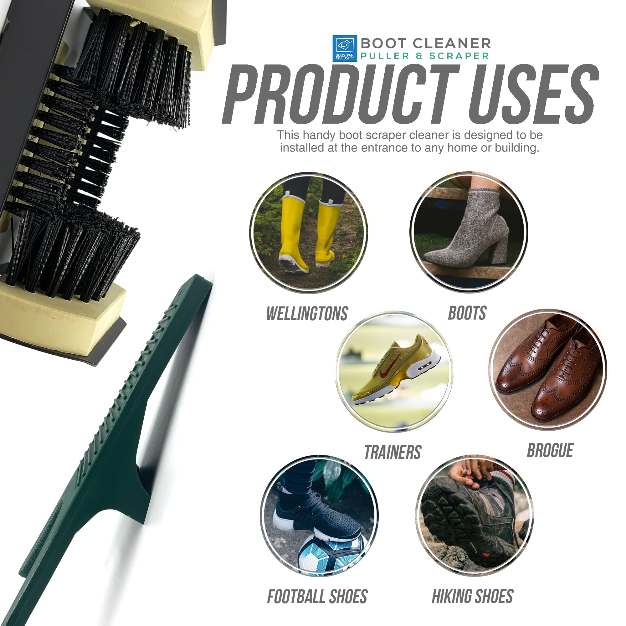 Parfait pour les agriculteurs, rendant leur vie plus confortable Nettoyage Chaussure Brosse De s Grattoir à Boue Extérieur Pour Tire Bottes En Fonte Description du produit Nettoyeur de boue pour chaussures, grattoir à bottes, brosse à chaussures d'extérieur Durabilité : avec un cadre en métal, le grattoir à bottes d'extérieur offre une durabilité remarquable dans des conditions météorologiques complexes. Il présente une haute tolérance à l'humidité et aux changements de température, permettant une utilisation à long terme Son puissant effet décontaminant élimine efficacement la saleté, la boue et les taches tenaces des chaussures de travail, de jardin et de randonnée. Largement utilisé : la brosse à chaussures d'extérieur pour grattoir à bottes offre un nettoyage fiable pour les familles possédant des fermes ou des jardins privés, des chantiers industriels et des aventures en plein air. RAPIDE ET EFFICACE] : Ce nettoyeur de bottes double face est doté d'une brosse de chaque côté du manche et peut être utilisé par deux personnes simultanément... Taille du produit : environ 23,5x10,5 cm/9,25x4,13 pouces (voir l'image pour plus de détails) Liste de colisage: 1 * brosse à chaussures d'extérieur pour grattoir à bottes Brosse grattoir de nettoyage de bottes robuste, nettoyeur de boue de chaussures Il présente une amélioration significative de la résistance structurelle et vous permet de nettoyer vos chaussures sans vous baisser ni les enlever. Sa conception durable garantit une utilisation à long terme. Relaxdays Brosse à Chaussure, Lot de 4, Tout Autour, Gratte-Bottes Spécification: Nom: brosse à chaussures d'extérieur grattoir à bottes Matériau du produit : bois + métal. Usure : grâce à un cadre métallique nouvellement renforcé autour de la , le grattoir à bottes peut résister aux environnements extérieurs les plus difficiles.