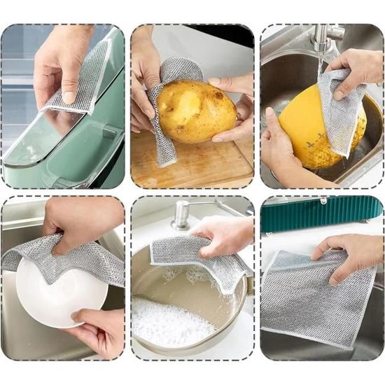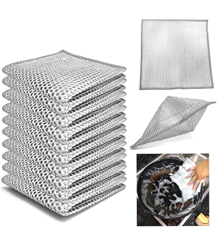HRainbow Lot de 12 Chiffon de Nettoyage en Microfibre Multifunction La structure en maille assure un nettoyage en profondeur, notamment en cas de saleté tenace. Il est idéal pour diverses surfaces et élimine efficacement les résidus sans laisser de rayures Lavette Fibres Métalliques Anti-rayures 10 Pièces Chiffon De Nettoyage En Métal, Chiffon De Nettoyage En Fibres Lavette Cuisine MATÉRIAUX DE HAUTE QUALITÉ : Nos chiffon sont fabriqués en polyester. Ils sont parfaits pour un usage quotidien comme torchons, essuie-tout ou essuie-pâte. Chiffons De Vaisselle Multifonctionnels Anti-Rayures Torchon À Récurer... Ils conviennent à une utilisation sur des matériaux tels que le plastique, le métal et la céramique, et n'abîment pas la vaisselle. ÉLIMINE LES TACHES TENACES : Nos Chiffon de Nettoyage en métal de haute qualité éliminent efficacement diverses taches d'huile, ce qui en fait un choix idéal pour les essuie-tout ou les essuie-tout en inox. Les fibres résistantes des chiffons résistent aux frottements, prolongeant considérablement leur durée de vie pour répondre aux besoins quotidiens en cuisine. SÉCHAGE RAPIDE : Grâce à leur structure spéciale, ces chiffon offrent une excellente perméabilité à l'eau, sèchent rapidement et préviennent la formation d'odeurs et de bactéries.