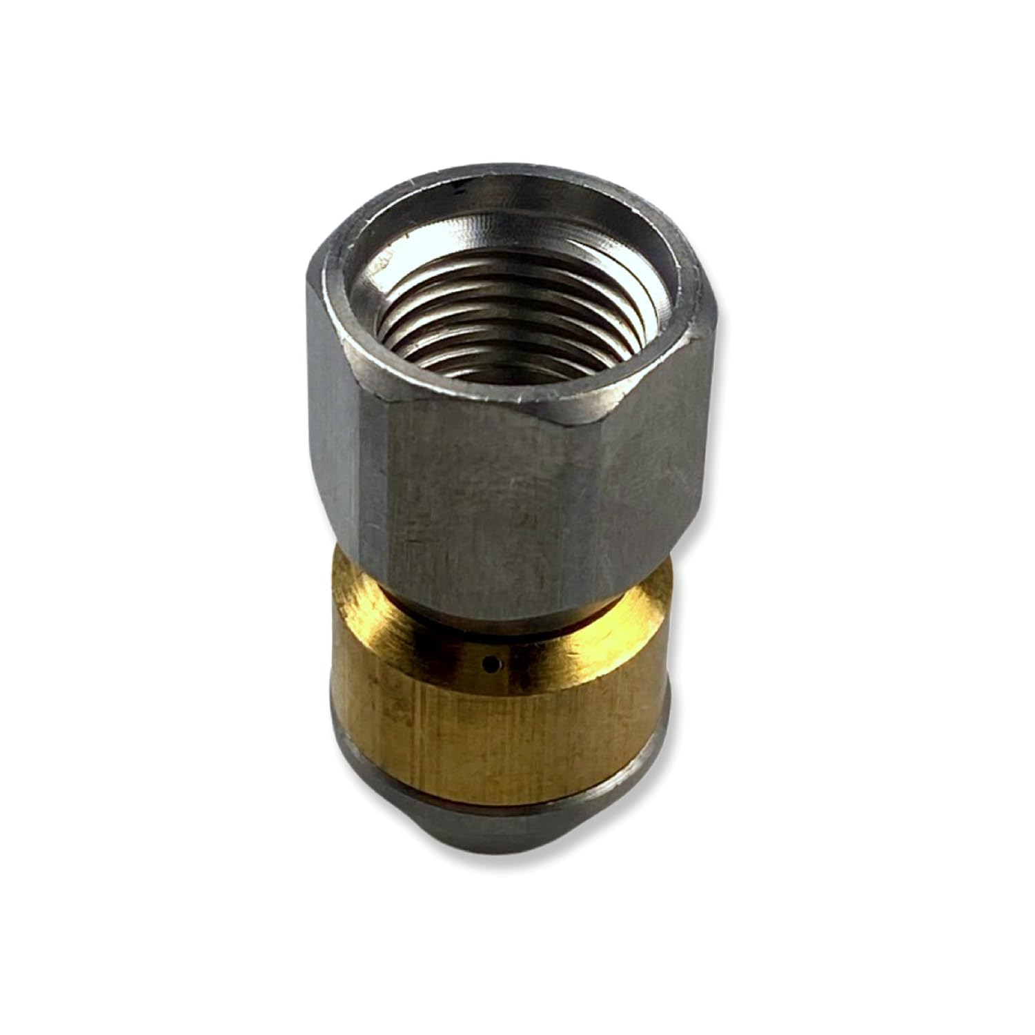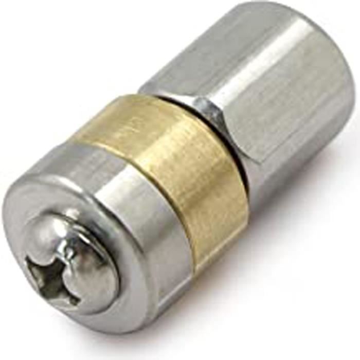 Disponible en tailles de trou de 0,3 mm à 0,8 mm, la buse offre la flexibilité nécessaire pour répondre à différents besoins de nettoyage. Performance de nettoyage optimale grâce à la fonction rotative. La marque M&M Smartek de Hattersheim, en Allemagne, est synonyme de qualité et de produits bien pensés. La buse est équipée de trois trous orientés vers l'arrière qui permettent une alimentation puissante du tuyau et facilitent ainsi considérablement le processus de nettoyage. Lot de 2 buses de nettoyage de tuyaux, 1/8, rotatives rigides Avantages en un clin d'œil : Idéal pour les tuyaux d'un diamètre supérieur à 50 mm. Fabriqué en acier inoxydable de haute qualité et rotor en laiton, il convainc par sa durabilité et sa résistance à la corrosion. La buse de fusée pousse le tuyau dans les tuyaux uniquement par la pression de l'eau Domaines d'application : nettoyage des tuyaux de drainage, tuyaux d'égout, tuyaux de drainage, etc. Raccordement : filetage intérieur 1/4, veuillez vérifier votre raccord fileté sur le tuyau de nettoyage. 3 vers l'arrière, 1 vers l'avant Polyvalent : disponible en tailles d'alésage de 0,3 mm à 0,8 mm, idéal pour différents besoins de nettoyage. La buse rotative de nettoyage de canalisations avec filetage intérieur de 1/4 est l'accessoire idéal pour les nettoyeurs haute pression pour nettoyer efficacement les tuyaux de drainage, de canalisations et de drainage. Compatibilité universelle avec différents nettoyeurs haute pression. Deboucheur Wc Buse De Nettoyage Rotative 1/4" - Filetage Intérieur Pour Kärcher Buse Acier Inoxydable 1/4 Pouce PISTOLET DE PULVÉRISATION Haute Pression pour Kärcher Kränzle Ink... Buse de nettoyage de canalisations rotative filetage intérieur 1/4 pour Kärcher Kränzle WAP Alto et autres nettoyeurs haute pression pour un effet de nettoyage très puissant Fonction rotative : offre un nettoyage uniforme et facilite l'élimination des dépôts tenaces dans les tuyaux à partir de 030