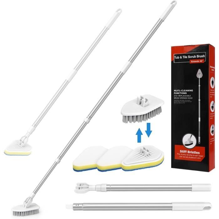 Accessoire Ménage Angles 3 In 1 , Brosse De Nettoyage De Douche Rotative à 180 ° Avec 3 Extensible Manche,127cm Long Manche Brosse De Nettoyage Pour Baignoire Carrelage Salle De Bain Brosse Nettoyage Salle De Bain JOLIGAEA Brosse de Nettoyage de Douche 3 en 1, Brosse de Nettoyage de Salle de Bain rotative à Augot Brosse de Nettoyage Salle de Bain 2 en 1, Brosse de Nettoyage de Douche rotative à 180... Il est idéal pour les baignoires, le carrelage, les sols et autour des toilettes. Chiffon en microfibre Doux pour ne pas endommager la surface du verre sans rayures. MÉCANISME DE BLOCAGE DE LA TÊTE: Les têtes de mise à niveau peuvent non seulement pivoter, mais aussi être verrouillées en place entre 0° et 180° pour éviter de se balancer pendant le nettoyage, ce qui est ergonomique et permet de se rencontrer pour nettoyer sous différents angles. Poils rigides Fabriqué en matériau PP de haute qualité, robuste et ne tombe pas facilement, adapté pour nettoyer la saleté tenace. FACILE À ASSEMBLER ET À UTILISER: Le faut emboîter les 3 parties de manche puis visser. Un clic pour ouvrir, retirer la tête de brosse, puis le tampon en microfibre ou le tampon à récurer peut être directement collé sur le panneau. Pas mal pour nettoyer la baignoire et les murs et frotter miroir ou des parois en verre. Tête de brosse de nettoyage rotative : la brosse à récurer à long manche pour douche est conçue avec une tête rotative à 45°, 90°, 180° pour fournir n'importe quel angle pour votre travail de nettoyage. Brosse de nettoyage pour crevasses, brosse de nettoyage pour...