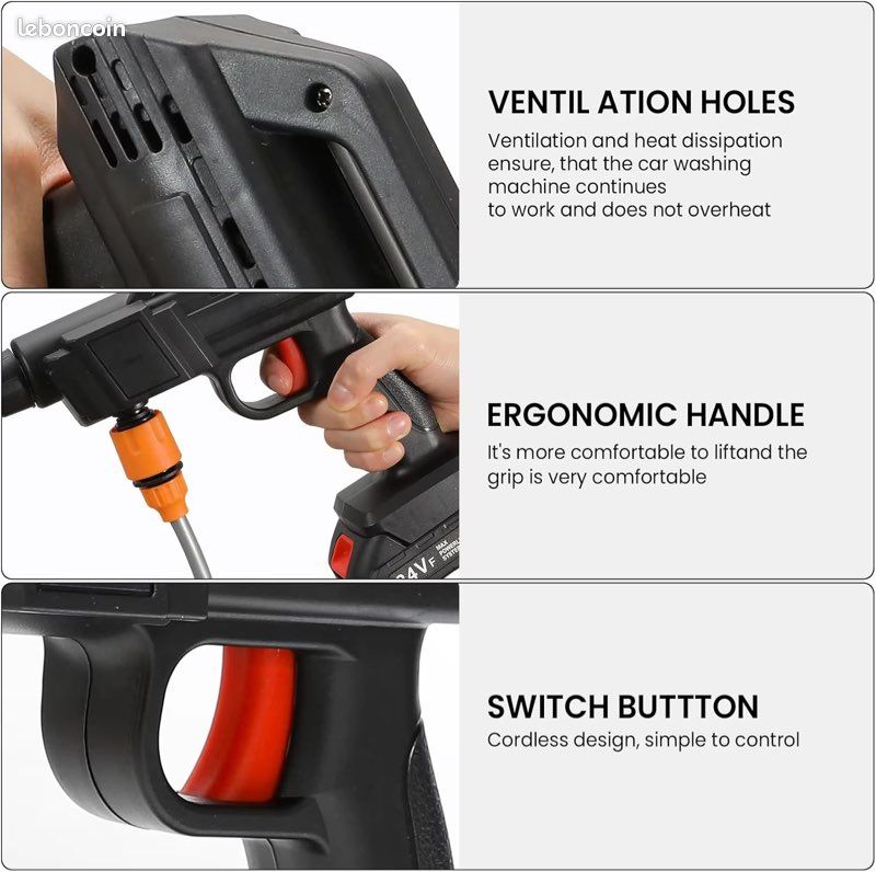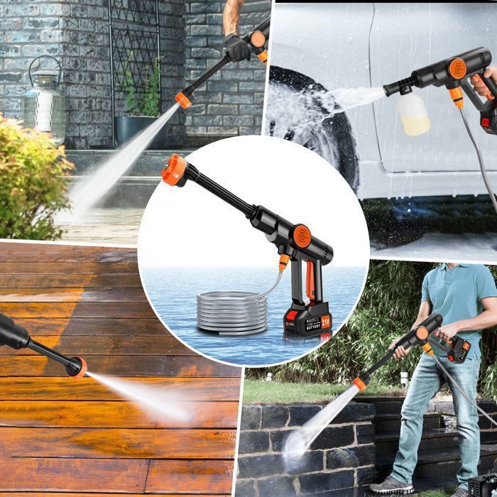 Starlyf High Pressure Nettoyeur Haute Pression à Batterie, Max 85 Bar Avec 2 X 4000mah Batteries, Pulvérisateur De Mousse, 6-en-1 Multi-Usage Buse Et 180° Buse Pivotante Pour Le Nettoyage Et Arrosage Nettoyeur Portable Voiture Jardin Le corps ABS est non seulement résistant à l'usure, mais aussi anti-âge pour réduire le poids de la machine Nettoyeur haute pression sans fil Pistolet pulvérisateur pour nettoyeur... Design de buse 6 en 1 : nettoyeur haute pression sans fil équipé de buses 6 en 1 (0°, 15°, 25°, 40°, mode pulvérisation et mousse), les utilisateurs peuvent facilement tourner et basculer en fonction des besoins de nettoyage, batterie de nettoyeur haute pression portable pour répondre aux besoins de nettoyage de différents scénarios. Grâce au tuyau de 10 mètres, l'eau peut être prélevée de différentes sources d'eau telles que les rivières, les seaux ou les piscines. Machine à laver de voiture. Batterie au lithium de grande capacité : nettoyeur haute pression manuel 21 V batterie au lithium amovible que vous démontez rapidement et chargez le lave-auto sans attendre, nettoyeur haute pression électrique portable d'une durée d'environ 35 minutes, pistolet à eau portable haute pression avec surintensité, surtension, surchauffe, protection de charge et décharge, 2025 Le dernier nettoyeur haute pression portable 21 V peut vous aider à réaliser plus de travaux de nettoyage en moins Temps à faire Le filtre dans l'embout filtre efficacement les impuretés, protège l'appareil et assure des résultats de nettoyage optimaux, ce qui en fait le compagnon idéal pour le lavage de voiture, le vélo, le jardinage et d'autres tâches de nettoyage en plein air Utilisation polyvalente : nettoyeur haute pression sans fil 21 V max., 30 bar. Design unique : notre nettoyeur haute pression mobile mobile à batterie adopte une taille plus mince pour une prise en main facile, poignée ergonomique extrêmement confortable, le nettoyeur haute pression avec batterie dispose également d'un orifice de refroidissement ventilé pour ventiler et dissiper la chaleur afin de garantir que la machine à laver de voiture continue à fonctionner sans surchauffe. Haloppe Nettoyeur haute pression portable sans fil 24 V 1500 Ah avec 2