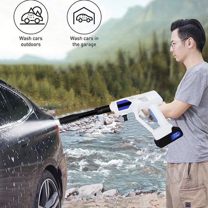 Nettoyeur haute pression multifonctionnel, parfait pour le lavage de voitures, l'arrosage de jardins, l'irrigation agricole et le nettoyage quotidien. Nettoyeur Haute Pression Sans Fil Efficace Nettoyeur Haute Pression Sur Batterie Nettoyeur Haute Pression Sans Fil - PRUMYA - 21V - 652 PSI - Buse 6 En 1 - 3500W Pistolet A Eau Electrique Buse Réglable 6 En 1 Lavage Auto Matériau : ABS, cuivre Capacité : 1500 mAh * 5 Pression maximale : 60 bars Vitesse : 30 000 tr/min Débit maximal : 10 l/min Portée du jet : 6-10 mètres Longueur du tuyau : 4-5 mètres Domaines d'application : lavage de voiture, arrosage des fleurs, arrosage des légumes, pulvérisation de médicaments, nettoyage du jardin, etc., Caractéristiques : 1., Le matériau spécial est étanche, imperméable et plus sûr lorsqu'il est sous tension., 2., Équipé d'une fonction de protection contre la température, arrêt automatique en cas de surchauffe et de surcharge, éliminant les risques pour la sécurité., 3., Grande capacité d'absorption d'eau, facile à absorber l'eau 4., Une variété d'accessoires d'extension de haute qualité facilitent le nettoyage et le rendent plus propre 5., Nettoyage haute pression multifonction, très adapté au lavage de voitures, à l'arrosage de jardins, à l'irrigation agricole, au nettoyage quotidien 6., Facile à installer, installation rapide de tous les connecteurs d'interface 1. Matériau imperméable spécial, isolation de l'eau et de l'électricité plus sûre · 2. Deux méthodes d'entrée d'eau Il n'est pas recommandé de le connecter au robinet, sinon la pression de l'eau ne sera pas convertie à temps et des fuites se produiront. 【Alimenté par batterie】 Le nettoyeur haute pression portable sans fil est livré avec 1/2 batterie amovible de 1500 mAh*5, fournissant une alimentation stable. Nettoyeur haute pression sans fil, 21 V, 60 bars, mobile, avec 2 batteries, buse 3 en 1, tuyau de 5 m, pour voiture, terrasse, fenêtre, pelouse · Options d'achat... Il permet d'extraire facilement l'eau de diverses sources telles qu'un seau, une piscine, une rivière ou toute autre source d'eau. Elle est idéale pour diverses tâches telles que l'arrosage des plantes, le lavage des voitures, le nettoyage du matériel de jardinage, des vélos, des fenêtres, des murs, des sols, des clôtures et des coins difficiles d'accès. Le corps est fabriqué dans un matériau imperméable qui empêche l'eau et l'électricité de se mélanger, garantissant ainsi la sécurité. Nettoyeur haute pression sans fil 21 V avec 2 Batteries – 35 bars/buse 6 en 1 et boîte 【Extraction d'eau de n'importe où】 Équipé d'un tuyau de 4 à 5 m et d'un panier filtrant, cet appareil peut éliminer efficacement les impuretés telles que les particules, les débris ou les boues. Son long tuyau vous permet de vous déplacer sans effort autour de votre voiture, garantissant un nettoyage en profondeur sous tous les angles.