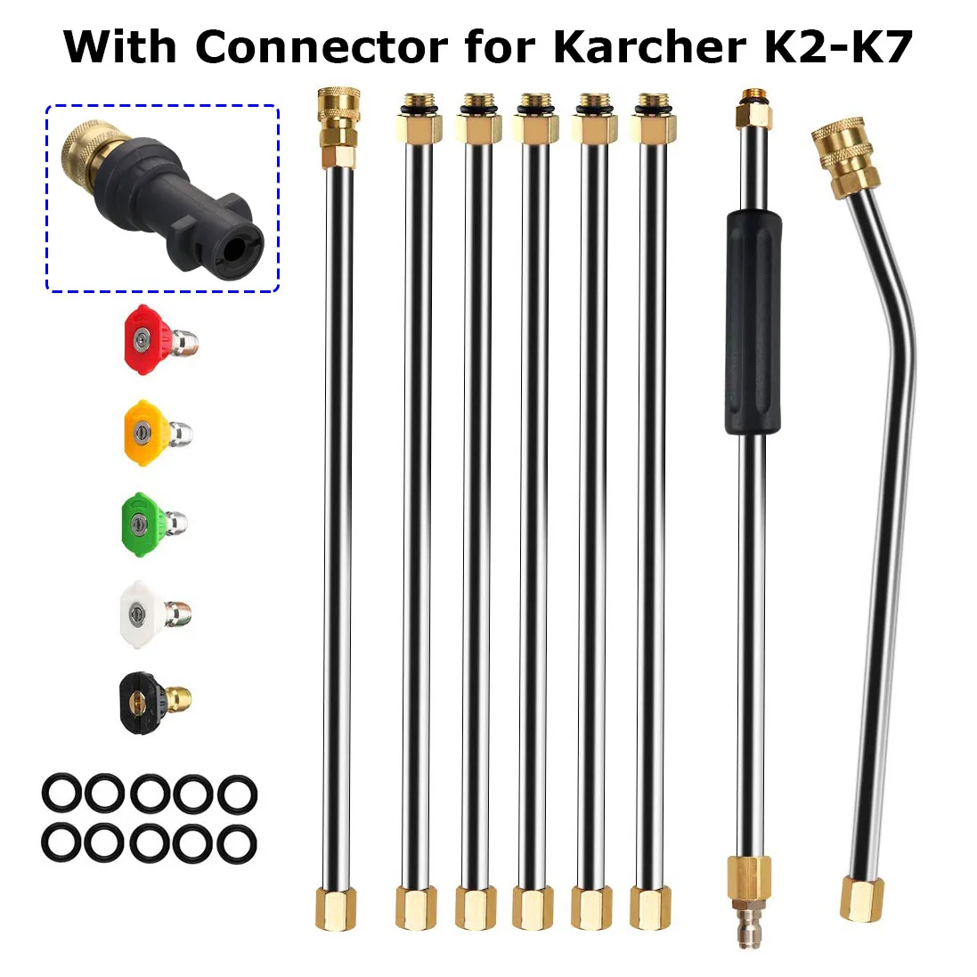 Buse de pulvérisation pour nettoyeur à haute press... – Grandado Kärcher K4 Classic nettoyeur haute pression avec déboucheur de... Compatible Karcher Série K Extension De Lance Pour Nettoyeur Haute Pression - Tige Incurvée À 30 Compatible Série K Product details Matériau du produit : acier inoxydable laiton Couleur du produit : or Poids du produit : 394,5 g (dont 5 buses) Taille du produit : jusqu ='à environ 42 cm Haute pression : extension de pistolet de lavage haute pression 4000 PSI, raccords en laiton. REMARQUE : L ='extrémité de la baguette est M22 14. Assurez-vous que l ='embout de votre nettoyeur haute pression est de... Choisissez Qwork, où votre argent travaille plus dur pour vous., 1., La construction en acier inoxydable garantit des performances et une fiabilité durables, 39 cm de long + 7 cm de section incurvée., 2., Comprend une tige incurvée à 90 ° pour un nettoyage facile des zones difficiles d'accès telles que les ailes, le châssis, les toits et les gouttières., 3., Offre des options de pulvérisation polyvalentes avec cinq angles de buse: 0° (rouge), 15° (jaune), 25° (vert), 40° (blanc) et 60° (noir)., 4., Compatible avec les pistolets de nettoyage haute pression K-Serie K2, K3, K4, K5, K6 et K7 pour plus de commodité., 5., Prend en charge une pression de travail maximale de 4000 PSI pour des performances de nettoyage efficaces et puissantes. Nous simplifions les choses et nous assurons que vous obtenez le meilleur pour moins cher.