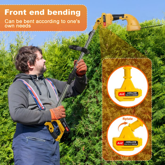 TAILLE-HAIE ÉLECTRIQUE SANS fil ergonomique passionnés de jardinage Force de soufflage puissante : avec une force de soufflage maximale de 809 g, il peut facilement venir à bout de débris difficiles tels que les feuilles compactées, les petites branches et la neige épaisse, sans plus de nettoyage manuel fastidieux Taille Haie Et Tondeuse Gazon Portable Neuradical Taille-haie électrique Sans Fil 21 V Avec 2 Batteries Taille Haie Batterie Ce taille-haie électrique à main vous donne la liberté de vous déplacer sans restriction dans votre cour ou votre jardin. Taille-haie sans fil 2 en 1 : il est multifonctionnel, équipé de deux lames différentes : largeur de la lame d'élagage 10 cm : convient pour la taille de haies, pépinières, arbres à thé ; longueur de la lame de tonte 30 cm : convient aux pelouses délicates et douces, sans outils. Accueil Outils de jardinage YOFIDRA taille-haie électrique sans fil 2000W 15000 tr/min scie d’élagage tondeuse à gazon coupe de jardin outils électriques pour batterie 21V 18V Koopa-Mini tronçonneuse sans fil, outil de 6 pouces, 18/21V, scie JOSaw électrique avec système de micro automatique pour la coupe des arbres $105.88 Back to... Livré avec deux batteries au lithium et un chargeur. La poignée ergonomique est recouverte de caoutchouc souple pour une prise en main confortable et réduit les vibrations, améliorant ainsi la maniabilité et la sécurité. Nous serons en ligne 24 heures sur 24, 7 jours sur 7., Si vous rencontrez des problèmes avec le produit, veuillez nous contacter, et nous vous proposera la meilleure solution. Remarque : les lames doivent être nettoyées et stockées au sec immédiatement après utilisation.