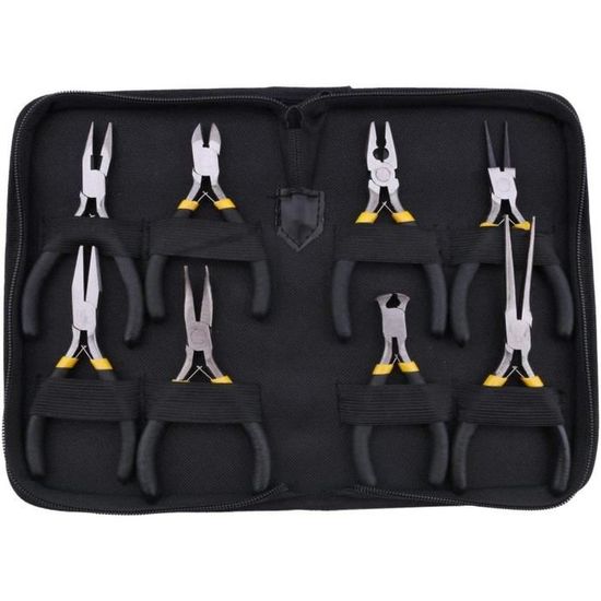 TOOLEAGUE 9 en 1 herramienta pelacables, cortadores de cables, alicates Pince Coudée 45 90 Degrés Pinces à Bec Long - TRAHOO - Nez Aiguille Droit - Pinces Extra Longues - Acier à Outils Outillage Professionnel Réparation Pince droite à circlips extérieurs | Hubert Quincaillerie Matériau de haute qualité : le lot de 5 pinces à bec aiguille est fabriqué en acier CR-V dur, l'ensemble est trempé à haute température, et la tête de la pince est deux fois trempée, bien polie, et il ne rouille pas facilement, ce qui le rend plus robuste et durable. Plusieurs angles réglables : cet ensemble de pinces à bec aiguille est livré avec trois angles de coupe droits, 45 degrés et 90 degrés pour différents scénarios... Contenu du produit : 1 pince droite longue portée, 1 pince à bec courbé à 90°, 1 pince à bec courbé à 45°, 1 pince diagonale, 1 pince à bec en forme de O et un sac de rangement pour un meilleur rangement et transport. Design convivial : les mâchoires professionnellement conçues et les poignées extra longues facilitent le fonctionnement dans les endroits étroits, contournent les obstacles sans effort et saisissent les petites pièces, améliorant considérablement l'efficacité du travail.