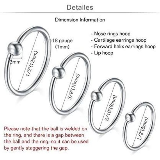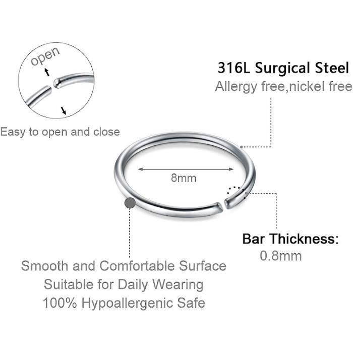Lot 8 Bijoux Femme Homme MODRSA Piercing Nez Femme Clous Nez L Forme Acier Inoxydable Anneaux Percing Nez 0.8Mm Nez Goujons 20G Nez Os Nez Vis En Acier Inoxydable Nez Twister Crochet En Forme De L Nez MODRSA 20G Piercing Tragus Piercing Labret Argent en Acier... Informations produit : Les broches pour nez sont de gauge 20G (0,8 mm) et de 7 mm de longueur. Différents styles de mode sont disponibles, offrant diverses options de styling pour votre vie quotidienne. Élégant et polyvalent : Ces broches pour nez en acier inoxydable exhalent de l'élégance pour la vie quotidienne et les fêtes. Il est exempt de nickel, de plomb et d'autres substances toxiques, et sûr pour l'usage. Portez ces piercings pour nez pour ajouter du glamour, et ces boucles d'oreilles pour conque sûres et confortables conviennent aux hommes et aux femmes. Service de marque : L'ensemble inclut un kit de 8 piercings pour nez. En cas de problème, n’hésitez pas à nous contacter. UN PETIT PIERCING BRILLANT SPECIALEMENT POUR NEZ AVEC UN DIAMETRE DE 0.8 MM. Vous êtes du style à changer de piercing régulièrement ? Vous êtes tomber sur le bijou à la mode