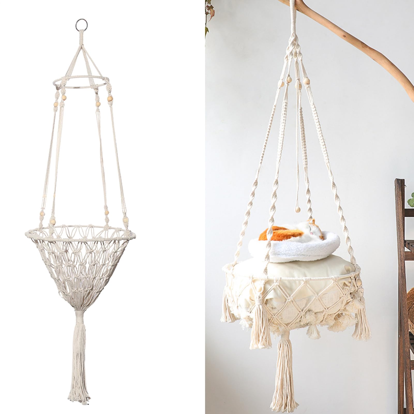 Hamac Tissé à La Main Avec Pompons Nicoone Hamac Pour Chat - Lit Balançoire En Coton à Suspendre, Nid Tricoté Pour Fenêtre, Pour Dormir, Jouer, Escalader Et Se Détendre Hamac Boho Pompons Comment Faire Un Hamac Pour Chat Fait Maison : Les Dimensions Ideales Selon La Taille De Votre Felin Ce beau hamac pour chat est notre conception originale, présente des motifs élégants avec beaucoup de beaux détails, il pourrait être utilisé comme un lit... Caractéristiques:Nom : hamac chat en M-a-c-r-a-m-é. CotonTaille:S : environ 30 cm/11,81 pouces, convient aux animaux de compagnie jusqu'à 5 kg/176,36 ozL : environ 40 cm/15,74 pouces, convient aux animaux de compagnie jusqu'à 10 kg-15 kg/352,73 oz-529,1 ozFabrication : Tissé à la main, chaque hamac est donc uniqueListe de colisage:1 hamac pour chat en M-a-c-r-a-m-é. Meilleur choix pour les animaux de compagnie : si vous choisissez un hamac pour animaux de compagnie pour vos chats, vous pouvez utiliser notre hamac pour chat en M-a-c-r-a-m-é, qui est un lieu de repos agréable pour qu'ils se recroquevillent et se détendent. Description du produit Descriptif & Caractéristiques :Ce hamac pour chat en M-a-c-r-a-m-é est parfait pour vos animaux de compagnie, il peut décorer vos chambres et leur apporter un lieu de repos agréable pour se recroqueviller ou dormir., 1., Fabriqué à partir de corde de coton de qualité, durable, stable et doté d'une bonne capacité de charge., 2., Il peut également vous aider à tenir les pots, coussins, plan-tes, planches, etc., de la bonne taille., 3., Un excellent décor pour le salon, la chambre, l'appartement, le dortoir, etc. Matériau génial : fabriqué à partir de corde de coton de qualité, notre hamac tressé bohème est durable, stable et a une bonne capacité de charge. Il a également des cercles en acier inoxydable à l'intérieur. Facile à utiliser : ce hamac bohème tressé pour animal de compagnie peut être facilement accroché au balcon, au plafond, au mur ou au jardin. Hamac avec 2 étages, 22 x 15 x 30 cm, pour furets ou rats couleur a...