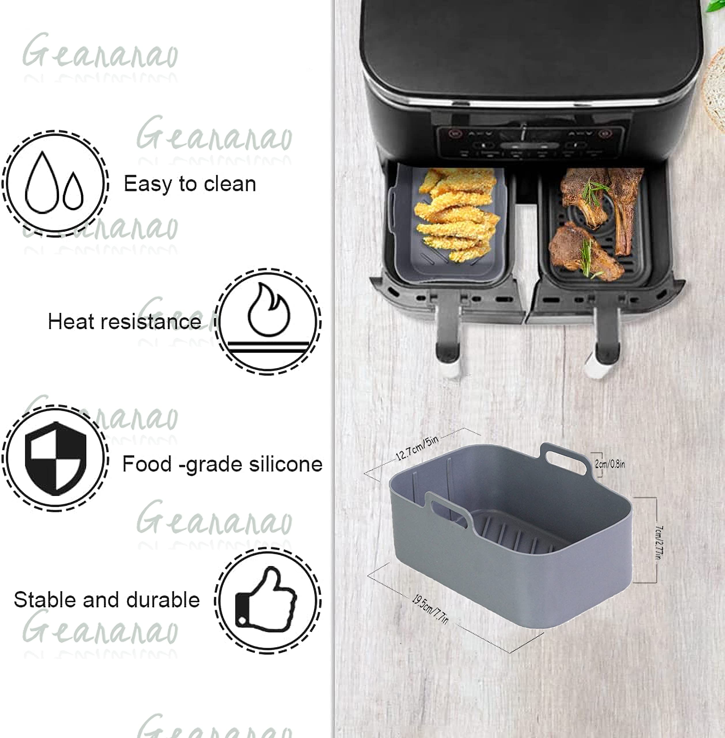 MILFECH Heißluftfritteuse Zubehör Airfryer Zubehör für Ninja Foodi Ces accessoires incluent des gants en silicone anti-brûlure qui peuvent protéger vos mains contre les brûlures lorsque vous retirez le moule en silicone. Plat Air Fryer Accessoire Air Fryer, 2 Paquet Moule Air Fryer Pour Ninja Foodi AF400EU AF300EU 9.5L, Air Fryer Accessoires, Moule Silicone A Ustensiles Silicone Chaleur Non seulement pour les friteuses à air chaud, mais aussi pour les micro-ondes, les fours et les réfrigérateurs, parfait pour les repas de famille et les occasions spéciales. Compatible avec les modèles Foodi AF300EU, AF400EU et AF500EU, ce kit est idéal pour les friteuses à double zone de 7,6L à 9,5L. Il peut également être utilisé dans les micro-ondes, les fours et les réfrigérateurs, ce qui le rend parfait pour les repas de famille et les occasions spéciales 9 PCS Accessoires Pour Airfryer Ninja, 2024 Nouveaux Accessoires Air... Qui permet de chauffer les aliments de manière uniforme, de sorte que vous pouvez profiter d'une cuisson saine et sûre. Matériau de Haute Qualité et Réutilisable - Les accessoires pour friteuse à air chaud Ninja sont fabriqués dans un matériau de haute qualité, réutilisable et résistant aux températures élevées. 23 Accessoires pour Moule Air fryer - Notre set d'accessoires Ninja Airfryer comprend 2 moules en silicone pour friteuse à air chaud, 1 moule à gaufres, 1 étagère à pâtisserie, 6 moules à gâteaux en silicone, 1 spatule en silicone, 1 brosse à huile, 2 grille de gril avec 4 brochettes, 2 gants en silicone, 1 pince en silicone, 1 brosse de nettoyage et 50 papiers cuisson Airfryer. Compatible avec Ninja Foodi AF300EU/AF400EU/AF500EU - Cet moule air fryer à air chaud est parfaitement compatible avec les friteuses Dual Airfryer 7,6L-9,5L, comme les friteuses à air chaud Ninja Dual AF300EU, AF400EU, AF500EU et autres friteuses à air chaud à double zone. La grille est lisse et durable. 1 Barbecue grill 2 Tapis de gaufre 3 Boîte à Toast 4 Cupcake 5 Papier Sulfurisé