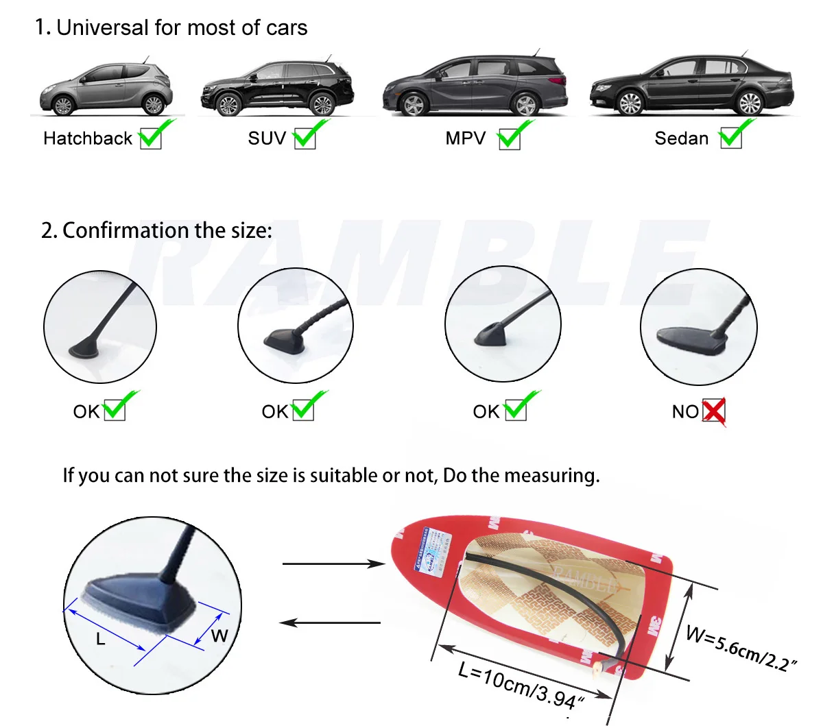 Parfait pour votre voiture. Antenne Adhésive Sans Perçage Antenne Aileron Requin Ramble Pour Nissan X-Trail T32 T31 T30 Style Avanc 1273895 Antenne Voiture 【Spécification】Nom: antenne d'aileron de requin de voitureMatériau : ABS de haute qualité + peinture UVLieu d'installation : toit de la voiture【Fonctionnalités】--L'antenne de voiture est fabriquée en matériau ABS de haute qualité, résistant à l'usure et durable, étanche à l'eau et à la poussière, et adapté à la plupart des voitures. ANTENNE,Dark Gold--Antenne Requin Étanche Pour Nissan Qashqai X-trail X... Si vous avez des questions sur le produit, veuillez nous contacter et nous vous fournirons une solution dans les 24 heures. 【Matériau de haute qualité】L'antenne d'aileron de requin est faite de plastique ABS de haute qualité, de cuivre haute performance et de puce interne, de processus de peinture au four, antipoussière, imperméable et solaire, durable, pas facile à endommager et à vieillir, longue durée de vie, peut améliorer la stabilité et la durabilité. Pearl White / Perle blanche Antenne De Requin pour Nissan X-Trail T32 T31 T30, ABS D'antenne D'aileron De Requin de Voiture Antennes De Toit AM/FM Signal Radio... 【Le forfait comprend】1 × antenne aileron de requin【méthode d'installation】1., Nettoyez autour de la base de la voiture, séchez-la et dévissez l'antenne de voiture d'origine, en laissant le siège de l'antenne., 2., Vissez la vis de l'antenne et connectez-la à l'aileron de requin, et allumez la radio pour tester le signal., 3., Alignez la position et appuyez sur pour la rendre ferme., 4., Veuillez ne pas laver le véhicule dans les 48 heures suivant l'installation pour augmenter l'adhérence., 【Conseils aimables】1., En raison de différents moniteurs, il peut y avoir des erreurs dans la couleur affichée sur l'image, veuillez vous référer au produit réel reçu., 2., Veuillez mesurer la taille de l'antenne de voiture d'origine lors de l'achat, sinon elle ne conviendra pas! --Fil de connexion FM/AM intégré à l'antenne d'aileron de requin, utilisant le cuivre comme amplificateur de signal, fournissant un signal plus stable et plus fort pendant la conduite. Il peut réduire la résistance de l'air, libérer de l'électricité statique, réduire le bruit, etc. Antennes pour nissan x trail t32 t30, radio x-trail t31 --Le design épuré de l'aileron de requin réduit la résistance au vent et s'adapte mieux à votre voiture, avec une apparence élégante. En tant que décoration de toit, rendez votre voiture plus à la mode et plus cool.