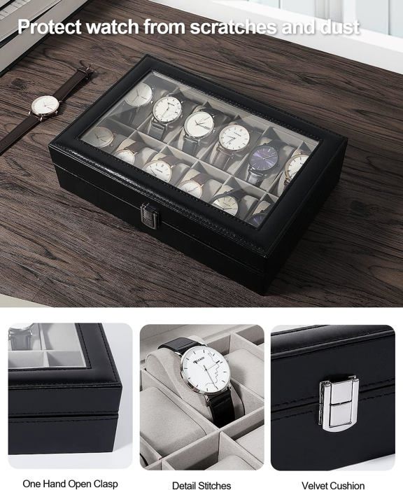 Idée cadeau: Parfait pour la Saint-Valentin, Noël, anniversaire de mariage ou toute occasion spéciale Coffret Rangement Montres Bijoux Procase Boite Montre Luxueuse à 2 Niveaux, 1ème Compartiment Pour Range 6 Montres, 2ème Coffret 2 Niveaux 8 Emplacements Tiroir Bijoux Noir Boîte Porte-Montres À 12 Compartiments, Couvercle En Verre, Serrure, 2 Niveaux, 1 Tiroir Pour Boîte à Montres double couche élégante et fonctionnelle, conçue pour accueillir 8 montres et divers bijoux dans un seul espace organisé., Dimension: 23*21*11cm. ProCase Boite Bijoux Hoe à 2 niveaux Luxueuse, 1èe Copartient pour... Organisation soignée: Compartiments bien pensés pour garder vos montres et bijoux parfaitement rangés et faciles à retrouver Avec 8 emplacements et peut s'adapter à différents types de montres avec une taille de cadran jusqu'à 50 mm