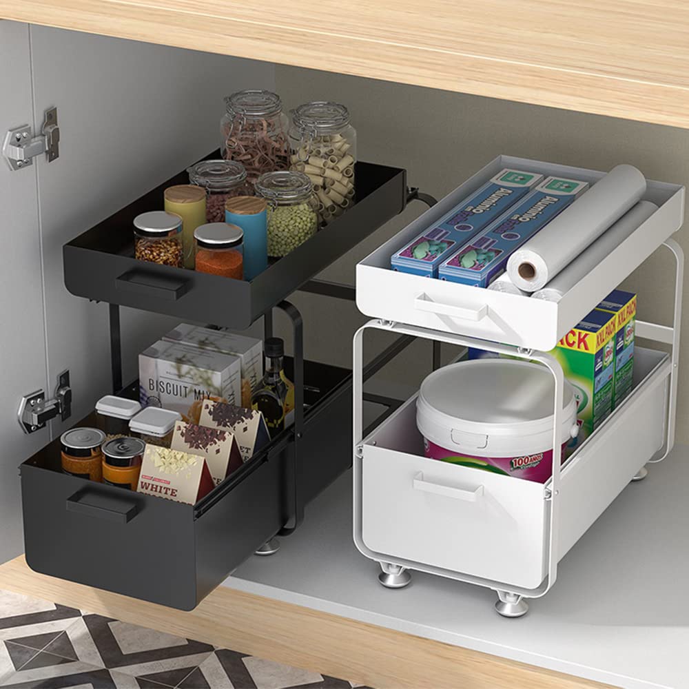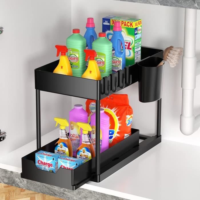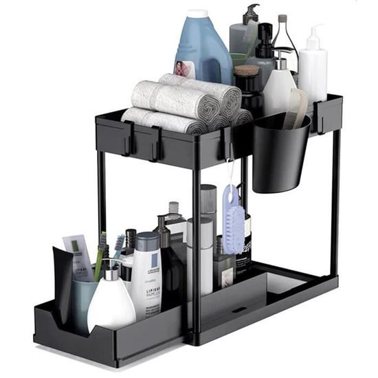Meuble de cuisine - OHMG - Etagère sous évier - Téléscopique 35-70 cm Auparavant, tout ce qui était placé à l'arrière de l'armoire devenait couvert et oublié. Accessoire Rangement Cuisine Rangement Sous Evier Rangements Sous Evier 2 Niveaux Organisateur Coulissant Avec 2 Tiroirs Porte-Épices Pour Rangement Et Organisation De Cuisine Organisateur Sous évier 【Conception coulissante】:Les tiroirs glissent vers l'intérieur et l'extérieur en douceur, même lorsqu'ils sont pleins de pots lourds. Organiseur polyvalent : il peut être utilisé comme rangement d'articles de toilette de salle de bain, étagère à épices de cuisine ou buanderie. La zone inférieure peut contenir des articles plus grands ou plus lourds, et vous pouvez garder les articles utilisés tous les jours sur le panier supérieur Étagère de Rangement Sous évier - OHMG - pour Cuisine Armoire Salle de... Il y a des instructions d'installation dans l'emballage. 【Facile à nettoyer】:résistant à l'humidité et à l'eau, il peut être essuyé rapidement même lorsqu'il est sale et est facile à nettoyer. Aucune perceuse, aucun outil électrique nécessaire, vous pouvez le terminer en quelques minutes. Vous pouvez l'utiliser pour stocker des fruits, des légumes, des collations, des produits de nettoyage, des soins personnels, etc. Comme il s'agit d'un tiroir amovible, il peut être sorti entièrement et nettoyé à fond. 【Fabriqué à partir de matériaux de qualité】:L'organisateur de l'armoire sont fabriquées en acier au carbone amélioré, avec une structure plus stable et un glissement en douceur, également un traitement anti - saleté, plus résistant que les produits en plastique, avec une capacité de charge élevée.