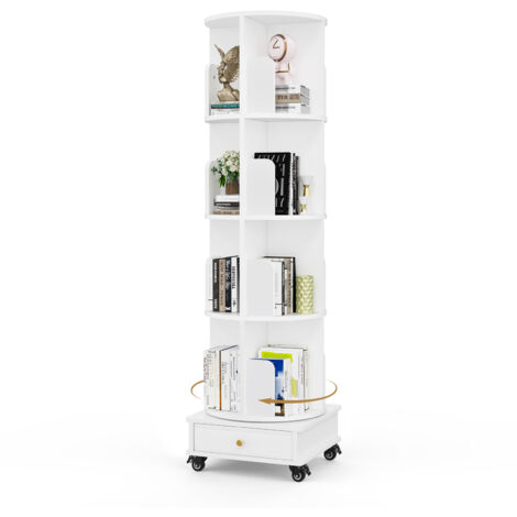 Avec une surface de seulement 0,22 m², cette étagère à livres rotative est le choix idéal pour maximiser l'efficacité de l'espace Rangement Livres Espace Réduit Nisorpa Bibliothèque Rotative à 360° à 5 Niveaux Pour Enfants - Étagère Rotative à 360° - Blanc Bibliotheque Etagere Étagère à livres rotative à 5 niveaux Cette bibliothèque rotative à quatre niveaux alliée à des matériaux de qualité et structure stable pour une durabilité optimale. Dotée de quatre roulettes universelles avec freins , elle est facile à déplacer et à fixer selon vos besoins Robuste et durable : fabriquée en panneau MDF de haute qualité et en ferrures métalliques, cette étagère à livres en bois garantit une stabilité et une durabilité à long terme. 【Fonctionnalité rotative】 : l'une des caractéristiques exceptionnelles de cette bibliothèque d'angle est sa fonction rotative. Nisorpa Bibliothèque rotative à 360° à 5 niveaux pour enfants - Étagère rotative à 360° - Blanc... Les séparateurs verticaux à chaque niveau empêchent les livres de glisser Chaque étage peut contenir environ 25 à 30 livres et peut supporter jusqu'à 25 kg. Élégante et pratique : la bibliothèque pivotante à 5 étages se distingue par son aspect minimaliste mais moderne et ses matériaux en bois qui rayonnent de chaleur et de confort. Nisorpa Bibliothèque rotative à 360° à 5 niveaux - Étagère d'angle pivotante pour la aison, le Cette bibliothèque n'est pas seulement un endroit pour ranger des livres, mais sert également de surface de présentation élégante pour diverses décorations et petits objets. Que ce soit dans le salon, le bureau ou la chambre à coucher, elle s'intègre parfaitement dans une variété de styles d'intérieur et augmente l'impression esthétique générale de votre maison.