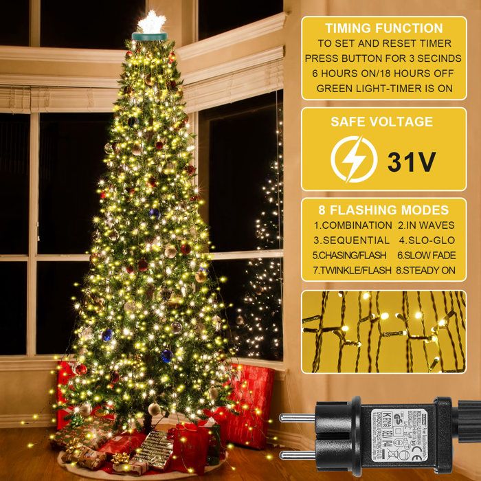 La fonction mémoire de cette guirlande led sapin de noel conserve automatiquement votre dernier réglage - plus besoin de reprogrammer à chaque utilisation Guirlande Lumineuse Pour Sapin De Noël, Blanc Chaud, 2 Mètres X 16 Pièces, 400 LED, Avec 8 Modes Et Minuterie 97097647 · Remboursement pendant 3 ans de votre... Installation express en 3 étapes:Montage ultra-simple de cette guirlande lumineuse sapin de noel : 1) Placez l'anneau au sommet du sapin 2) Déployez les 16 branches 3) Branchez l'adaptateur !, Aucun outil requis. La guirlande lumineuse pour sapin de Noël comprend un système anti-emmêlement pour éviter que les fils ne s'emmêlent., 5., En plus de décorer le sapin de Noël, son câble de 5 mètres de long peut être utilisé pour des installations créatives (parasols, gazebos, tentes, chambres d'enfants et balcons) parfaites pour les fêtes d'anniversaire, les dîners romantiques, les mariages ou les événements en plein air., 6., La guirlande lumineuse pour sapin de Noël peut résister à des températures de -10°C à +50°C. Guirlande 8 Modes Minuterie Rebecca Mobili Guirlande Lumineuse Pour Sapin De Noël 20 Mt 1000 LED Blanc Chaud Avec 8 Guirlande 2m 16 Branches Avec Anneau La guirlande sapin lumineuse ip44 est résistante aux intempéries et utilise des matériaux ignifugés La guirlande lumineuse pour sapin de Noël est étanche IP44 et peut être utilisée aussi bien à l'intérieur qu'à l'extérieur. Minuterie intelligente et sécurité optimale:Économisez de l'énergie avec la minuterie programmable (6h allumé/18h éteint) et l'adaptateur basse tension 31V certifié. Polyvalente pour toutes vos décorations:Utilisez cette guirlande sapin de noel lumineuse bien au-delà du sapin : tonnelles, mariages, balcons ou chambres d'enfants. La guirlande lumineuse sapin noël résiste aux températures extrêmes (-10°C à +50°C). Cette guirlande lumineuse pour sapin de Noël ne nécessite aucun outil. 8 Modes lumineux avec mémoire intégrée:Personnalisez votre ambiance parmi 8 modes : fondu lent, ralenti, combinaison, fixe, etc. Conçue pour intérieur et extérieur, cette guirlande de noel lumineuse transforme instantanément votre arbre en un point focal étincelant, créant une ambiance de Noël magique. Un câble d'alimentation de 5m offre une grande flexibilité de placement pour votre décoration de Noël La fonction mémoire de cette guirlande de sapin de Noël à LED enregistre automatiquement vos derniers paramètres - pas besoin de la reconfigurer manuellement à chaque utilisation !, 3., Fonction de synchronisation : 6 heures allumées/18 heures éteintes, l'adaptateur basse tension 31 V certifié permet d'économiser de l'énergie 4., Installation rapide : Montage ultra simple : placez l'anneau sur le dessus de l'arbre, dépliez les 16 branches LED et branchez l'adaptateur ! Son câble de 5m permet des installations créatives (parasols, tentes, pergolas) EINFEBEN Guirlande lumineuse LED Sapin de Noël 200 LEDs 2m Extérieur