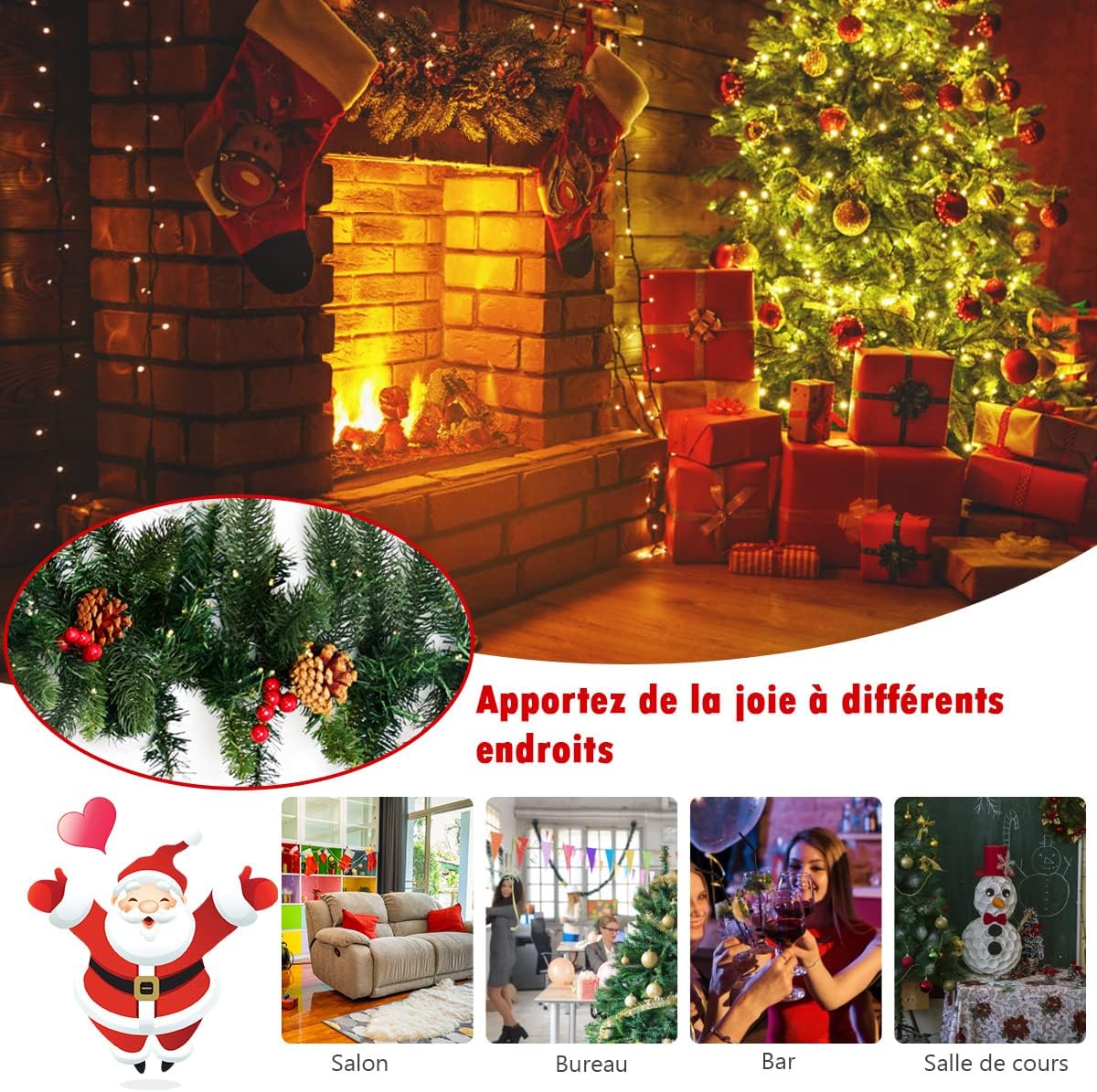*Large gamme d'applications : cette guirlande de pin est non seulement adaptée pour les décorations de Noël, mais également idéale pour les mariages, les fêtes, les chambres, les bureaux, les hôtels, les salles à manger, les supermarchés, et plus encore. Fleur artificielle,Couronne décorative pour table,plantes de vigne... * Matériau : plastique, fil de fer. * Taille généreuse : cette guirlande mesure environ 190 cm de long, offrant une couverture suffisante pour vos décors festifs. Guirlande Cheminée Fenêtre Mariage Fête Odot Décoration De Noël, 270cm Guirlande De Noel Deco, Intérieur Et Extérieur Decorative Atmosphere Pour Porte Mur Fenêtre Escalier Cheminée (250 Branche,Vert Guirlande Sapin Artificiel Caractéristiques : * Nom de la pièce : guirlande de pin de Noël artificiel. Description du produit Caractéristiques : *Guirlande de cyprès en pin artificiel : cette guirlande de Noël est fabriquée en plastique et fil de haute qualité, durable et capable de résister aux éléments extérieurs tels que le soleil et la pluie. Il ajoute une touche festive à toute occasion, créant une atmosphère chaleureuse et accueillante. * Taille : 190 cm de long., Couleur : vert. Contenu de l'emballage : 1 guirlande de pin de Noël artificiel (les produits sont uniquement livrés avec du rotin artificiel et ne comprennent pas d'autres décorations). Il peut être utilisé pour créer des guirlandes faites à la main ou associé à des boules de Noël, des pommes de pin et des pendentifs Père Noël pour créer une décoration de vacances personnalisée et belle. Ils apportent beauté et vitalité à votre environnement festif, améliorant l'atmosphère joyeuse des fêtes de Noël. Elle est idéale pour décorer la cheminée ou habiller une rampe d'escalier et ajouter une touche festive. Une beauté époustouflante : Décorez votre maison avec cette couronne de Noël réaliste pour une expérience authentique L'aspect réaliste de la guirlande améliore l'esthétique de divers espaces, ce qui la rend parfaite pour décorer les portes, lustres, murs, cheminées, et plus encore. [Longueur étendue] Cette guirlande de pin artificiel de 190 cm est conçue pour couvrir magnifiquement de grandes surfaces, ce qui en fait un ajout accrocheur à tout décor festif. Guirlande artificielle de cèdre boules dorées 5 pi | Matério