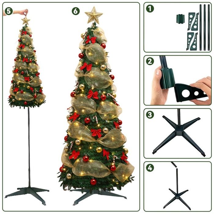 Lorsqu'il n'est pas utilisé, le sapin de noël artificiel peut être plié et placé dans une boîte, occupant un minimum d'espace de stockage. Arbre Noël Paillettes LED Sapin De Noël Artificiel Pliable De 150cm, Arbre De Noël Sapin Artificiel Avec Guirlande LED Les lumières émettent des lumières colorées vives et charmantes dans l'obscurité, ajoutant une atmosphère festive à votre pièce et à l'extérieur. 【Pratique et beau】Le sapin de Noël pop-up est fabriqué en PVC et en métal de haute qualité. Les arbres de Noël artificiels peuvent ajouter de la beauté, de l'élégance et du dynamisme aux lieux décorés, en créant des guirlandes lumineuses colorées avec 3 piles AA (non incluses). Convient pour les décorations de noël intérieures et extérieures lorsqu'il est suspendu plein de cadeaux dans votre maison ou votre bureau. Sapin De Noël Pliable Arbre De Noël Artificiel 1.5m, Pop-up Pliant Occasions disponibles Le sapin de Noël embellit nos coins vides, tels que les cheminées, les porches, les jardins, les balcons, les chambres, les salons, les salles de classe, les bureaux, les magasins, les bars, etc. Support métallique pliable, réutilisable plusieurs fois. 【Facile à Installer et à Ranger】Cet ensemble de noël à paillettes est livré avec un support pliable sapin de noel et amovible à quatre pieds, ce qui le rend plus peu encombrant, et son installation et son démontage sont simples, l'assemblage ne prend que quelques minutes. Le support à quatre pieds est fabriqué en épais et est uniformément sollicité, ce qui améliore la stabilité du sapin de Noël et l'empêche de tomber facilement, protégeant ainsi votre sol. Merveilleux et réaliste, plein d'ambiance de noël. Vous recherchez un sapin de Noël artificiel ? Ne manquez pas ce sapin enneigé. Fabriqué avec 515 rameaux et recouvert d'une épaisse poudre de neige, ce sapin de Noël artificiel présente un aspect dense et authentique, permettant de créer une ambiance de Noël chaleureuse dans votre pièce. Il est fabriqué en PVC de qualité, ignifugé, résistant à l'usure et non toxique. En outre... Sapin de Noël pliable, arbre de Noël 150 cm, pop up, gain de place, étroit et haut, sapin de Noël fin avec support, couleur verte avec décoration blanche... Matériau : PVC Le sapin de Noël est fabriqué en garance et PVC, et la surface est recouverte de paillettes scintillantes, ce qui est plus beau pendant la journée, et le support à quatre pieds est fabriqué en plastique épais, qui est uniformément stressé, ce qui améliore la stabilité du sapin de Noël, ne tombe pas facilement, et protège votre sol Il peut apporter beauté, élégance et vitalité aux lieux de décoration, tout en vous apportant de la bonne humeur et vous permettant d'obtenir plus de compliments Lorsqu'il n'est pas utilisé, le sapin de Noël peut être plié et rangé dans la boîte. 50 LED Vous obtiendrez un sapin de Noël pliable de 1,5 m de haut et une guirlande lumineuse colorée de 5 m de long (50 LED) et une étoile supérieure, alimentée par 3 piles AA (non fournies)