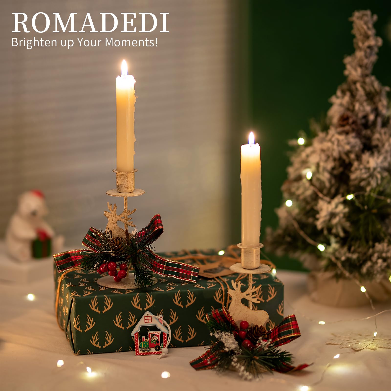 Style : design cerf/renne, insert en verre amovible. Lot De 2 Bougeoirs Vintage En Forme De Cage À Oiseaux, Pour Décoration... Aspect cerf festif : les bougeoirs en forme de renne projettent de charmantes ombres sur le mur lorsqu'ils sont allumés. Le fer et le verre robustes assurent stabilité et durabilité. Décoration Table Noël Vintage Lot De 2 Bougeoirs De Noël - Bougeoir Vintage En Forme De Cerf Pour La Bougeoir Noël Cerf Brillance festive, lumière romantique – Rendez Noël inoubliable La combinaison de fer robuste, de verre délicat et de peinture à la main détaillée fait de ces bougeoirs un point fort élégant pour votre salon, salle à manger ou table festive. Utilisation : intérieur, décoration de table de Noël, salon, fenêtre Contenu de l'emballage : 2 bougeoirs en forme de cerf (avec embout en verre)., Bougies non incluses. Le bougeoir est résistant à la chaleur, stable et assure une utilisation sûre dans le salon ou la salle à manger. Il est idéal comme table de décoration de Noël, rebord de fenêtre ou décoration d'hiver festive dans le salon. Design vintage peint à la main pour compléter n'importe quelle décoration de Noël. Les bougeoirs ne sont pas seulement une charmante décoration de Noël, mais aussi une décoration d'hiver élégante pour toute la maison. Histoire des bougeoirs et chandeliers à forme de cerf Utilisation polyvalente avec des bougies chauffe-plat, des bougies piliers ou des fleurs. Idée cadeau parfaite : ce lot de 2 bougeoirs cerf est un merveilleux cadeau pour la famille et les amis. Nivofu Lot de 2 bougeoirs piliers de Noël en métal vintage en