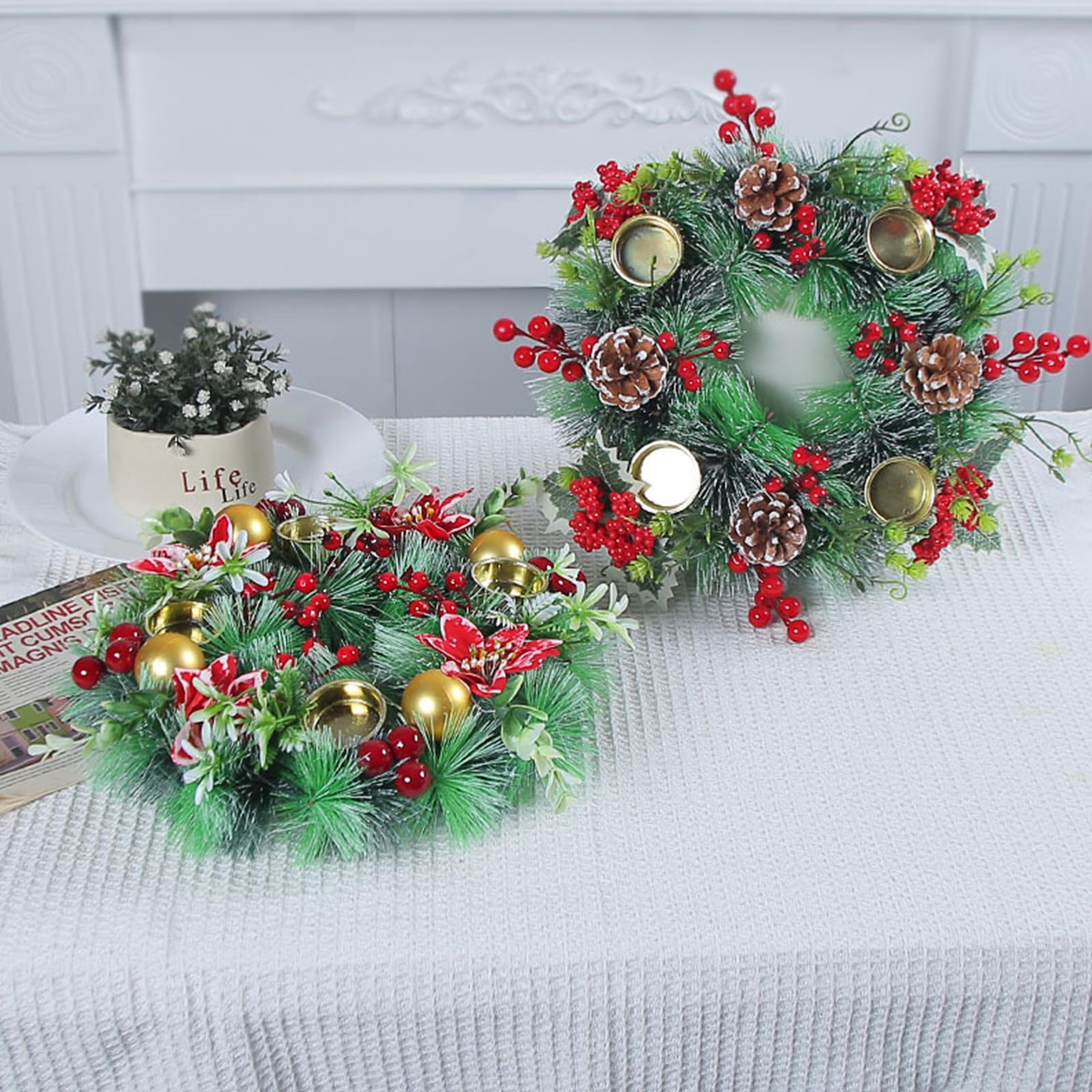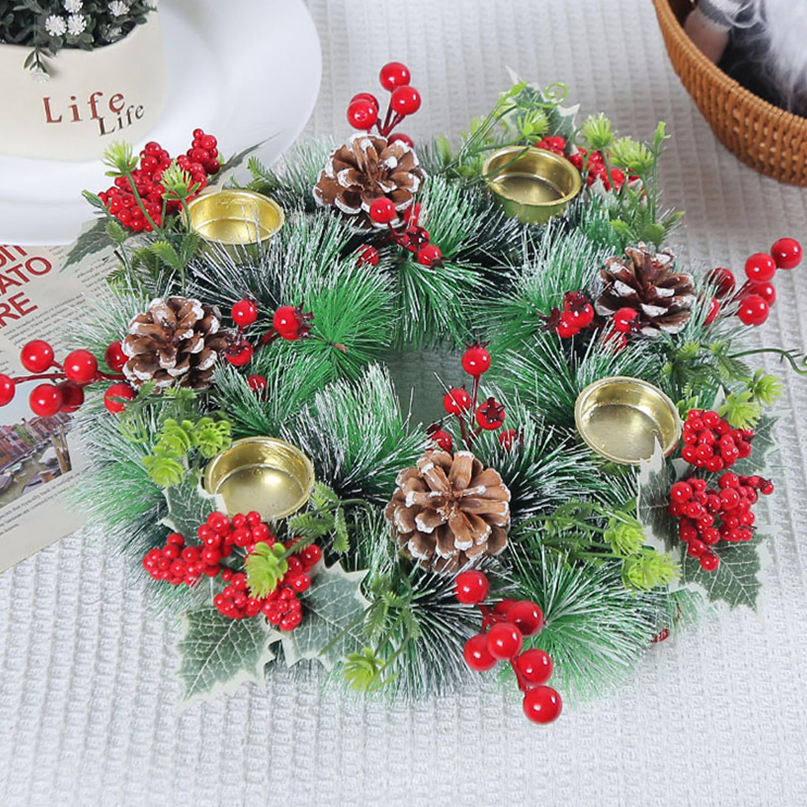💖【CHOIX DE TAILLE】Il y a 3 tailles différentes de couronnes de Noël à choisir, les couronnes peuvent être utilisées comme décorations autonomes ou avec des bougies pour répondre aux besoins de différentes scènes. Porte Bougies Noël Centre Table Centre De Table Noël. Bougie Noël. Décoration Table Noël. Table Centre Table Noel Caractéristiques du produit : -- MULTIPLES ÉLÉMENTS DÉCORATIFS : des branches de pin et des pommes de pin scintillantes, de magnifiques fleurs de Noël et des boules dorées font de la guirlande un chandelier aussi étincelant qu'une œuvre d'art. Réchauffez l'ambiance avec nos différentes bougies, chandeliers, serviettes et nappes de Noël. Et choisissez votre plus beau centre de table de Noël pour épater vos convives C-22*22*9cm Emballage du produit : 1 * Chandelier de Noël 💖【BOUGEOIR NOEL】Le porte-bougies de l'Avent de Noël possède 4 porte-bougies. Bougeoir Pour 4 Bougies - Étoile Décorative De Noël En Bois Et Métal... Transmettez les bénédictions et la joie des fêtes de fin d'année. Elle garantit également la cohérence et la beauté de l'effet décoratif. Vous pouvez l'utiliser année après année sans craindre qu'il ne se fane. Bougeoirs de Noël en forme de couronne pour centre de table, décoration d'intérieur, fête, table, église, salle à manger -- CADEAU DE FÊTE IDÉAL : Cette centre de table noel n'est pas seulement une décoration d'hiver indispensable pour votre maison, mais aussi un cadeau parfait pour vos amis et votre famille. 💖【DECORATION DE NOËL PARFAITE】Vous pouvez mettre la couronne sur la table à manger, le salon comme décoration, son design unique et ses éléments décoratifs riches, peuvent rapidement créer une forte atmosphère de Noël, rendre votre maison pleine de joie festive et de chaleur.