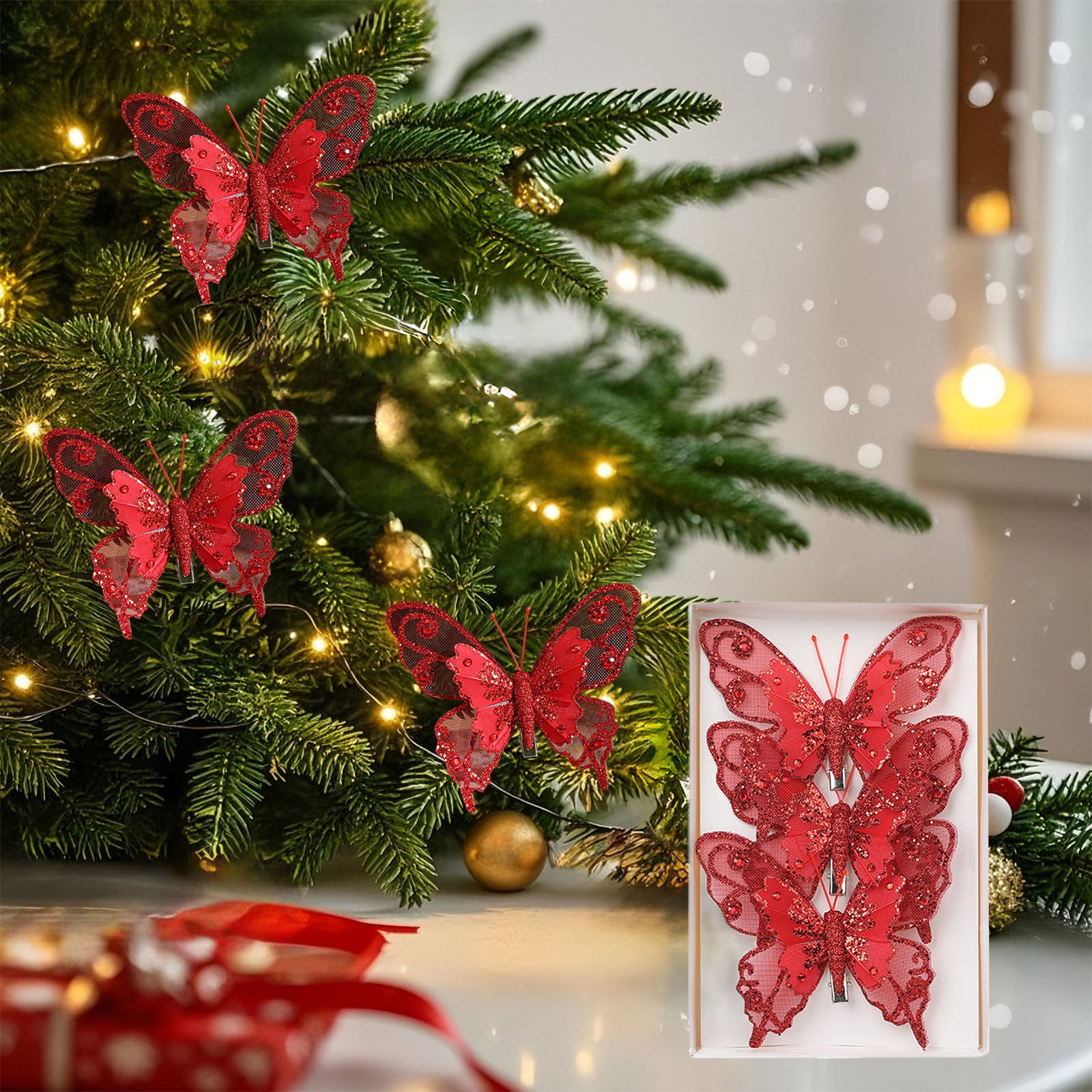 De Noel De Sapin De Noel Decoration De Noel Pour Sapin Boules Noel Lot Convient aux amateurs de décoration et à ceux qui veulent ajouter une touche de grâce à leur fête de festival, ils sont parfaits pour les familles et les particuliers. Papillon Sapin Noël Scintillant Décoration De Noël En En Forme De Papillon Pour Sapin De Noël - Pour Mariage, Fiançailles, Décoration Murale Décoration Festive Papillon Ces décorations en forme de papillon sont fabriquées en plastique solide et en poudre scintillante scintillante disponible en trois tailles différentes pour un affichage dynamique et charmant. Ces papillons scintillants peuvent décorer le sapin de Noël, les couronnes et les guirlandes ou servir d'ajout délicat à votre table de vacances et à vos arrangements de festival en intérieur ou en extérieur Ces papillons scintillants peuvent décorer un sapin de Noël, des couronnes et des guirlandes ou servir de complément délicat à votre décoration de table de fête... Veuillez vous assurer que cela ne vous dérange pas avant de commander. Spécifications: Composant : tissu + plastique + fer Dimensions : environ 11,5 x 10 cm. Augmente vos décorations de festival avec des décorations de sapin de Noël en forme de papillon. offre une finition scintillante qui capture les essences des étincelles de vacances. Pour plus d'informations, consultez la sélection Contenu de l'emballage : Lot de 3 décorations pour sapin de Noël et papillons Remarque : Les mesures étant prises à la main, les tailles indiquées peuvent varier de 1 à 2 cm. Lot de 3 décorations de Noël élégantes en forme de papillon pour décoration de sapin de Noël Fonctionnalités : Augmente vos décorations de festival avec des décorations de sapin de Noël en forme de papillon.