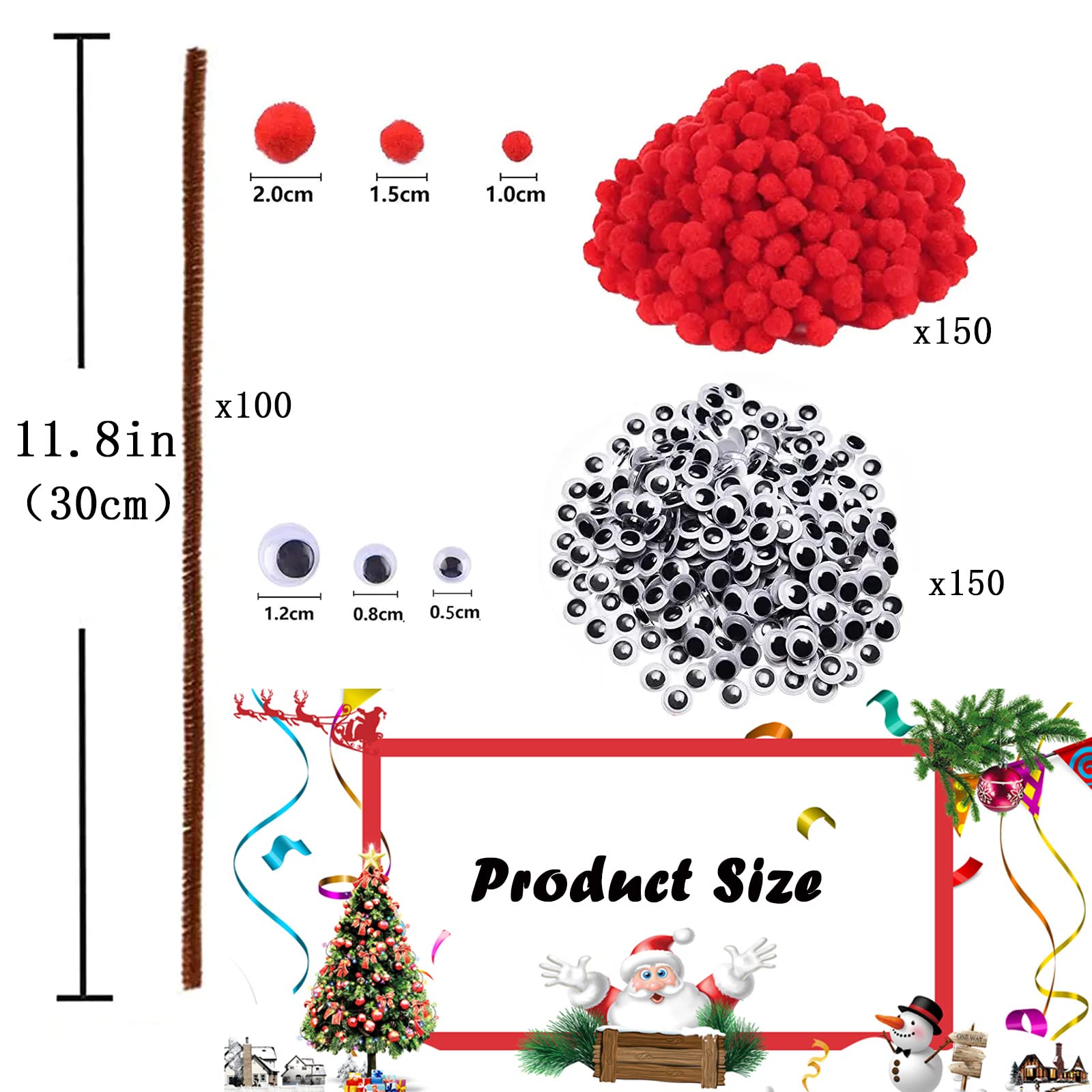Projets Créatifs Kit DIY Noël 650 Pièces - Pompons, Yeux, Cure Dimensions : 30,5 x 0,6 cm, les cure-pipes peuvent être coupés pour réaliser différents projets, la longueur est à la hauteur de votre design unique. Praisebank... Kit Bricolage Noël Avec Pompons Rouges XZEIT Lot De 400 Rennes De Noël à Faire Soi-même, Y Compris Creation Noel De plus, les yeux écarquillés sont adhésifs, vous pouvez donc facilement les coller n'importe où. Soyez assuré d'acheter. Mesurant 30 cm de long et 6 mm de diamètre, ces cure-pipes en polyester et fil de fer sont super faciles à modeler. Tu peux créer des arbres de Noël, des fleurs... ✅🎁【Projets d'artisanat de Noël】 : ces petits articles sont parfaits pour les loisirs créatifs de Noël. ✅🎁【Paquet de valeur】 Un grand ensemble - Il y a 100 bâtons de chenille marron, 150 pompons rouges de différentes tailles et 150 yeux mobiles de différentes tailles, un ensemble riche pour répondre à vos besoins ✅🎁【Assurance qualité】: Chaque Projets d'artisanat de Noël est soigneusement vérifié. Les pompons rouges peuvent être transformés en nez, et les tiges en chenille peuvent être transformées en corne de renne, ils seront assez mignons à l'aide de yeux mobiles mobiles
