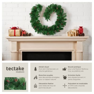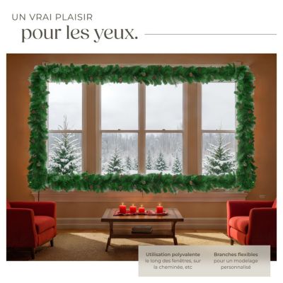 Guirlande de noël artificielle pour porte d'entrée aiguille de pin Contenu de L'Emballage: Guirlande Sapin Marron Sapin De Noël Miniature HOMCOM, Décoration De Noël, Boules De Noël Et Decoration Noel Guirlande 83C-133V00GN ● NOTE : uniquement pour usage intérieur, pas pour extérieur● Note: Si vous souhaitez la reprise de votre ancien produit, merci de consulter nos CGV sur les modalités de reprise et de nous joindre via la messagerie. Cette guirlande de noël avec éclairage LED convient aux escaliers, manteau de cheminée, cheminée, mur, fenêtres, porte, clôture, porche, etc. – Fabriqué à partir de matériel résistant au feu pour une décoration de vacances plus sûre Guirlande en lierre verte artificielle - 180 cm - Jour de Fête... BRANCHES IGNIFUGES : Réalisées en plastique résistant au feu et rigoureusement testées, les branches garantissent une utilisation sûre pour de nombreuses années. GUIRLANDE SAISONNIÈRE LUXURIANTE : Avec ses 162 pointes, cette guirlande de Noël présente un aspect dense et naturel, apportant un charme festif authentique à votre intérieur. Son installation est facilitée par la possibilité de la fixer avec des clous ou du ruban adhésif (non fourni), offrant ainsi de multiples options de placement. Caractéristiques:● Guirlande de Noël avec 162 pointes pour une apparence fournie ● Légèrement givré avec des pommes de pin et des grappes de baies pour une touche hivernale festive ● Noyau en fil métallique permettant une mise en forme facile et flexible pour répondre à vos besoins de décoration ● Branches ignifuges pour une sécurité et une jouissance tout au long de l'année ● Guirlande de Noël artificielle de 180 cm, convient à être drapé sur des cheminées, des rampes, des portes ou tout espace intérieurSpécifications:● Couleurs : vert, blanc ● Matériaux : plastique, métal ● Dimensions totales : Ø 25 x 180L cm ● Nombre de pointes : 162 ● Nombre de décorations : 14 (pomme de pin), 16 (grappe de baies) ● Temps de formation suggéré : 10 minutes ● Batterie : 3 x piles AA (non incluses) ● Réf. Dédiiez juste une dizaine de minutes à arranger les branches pour un rendu volumineux, simplifiant ainsi la décoration festive de manière ludique et plaisante. Son cœur flexible en fil métallique permet un ajustement facile, idéal pour tout espace intérieur et simplifie la décoration.