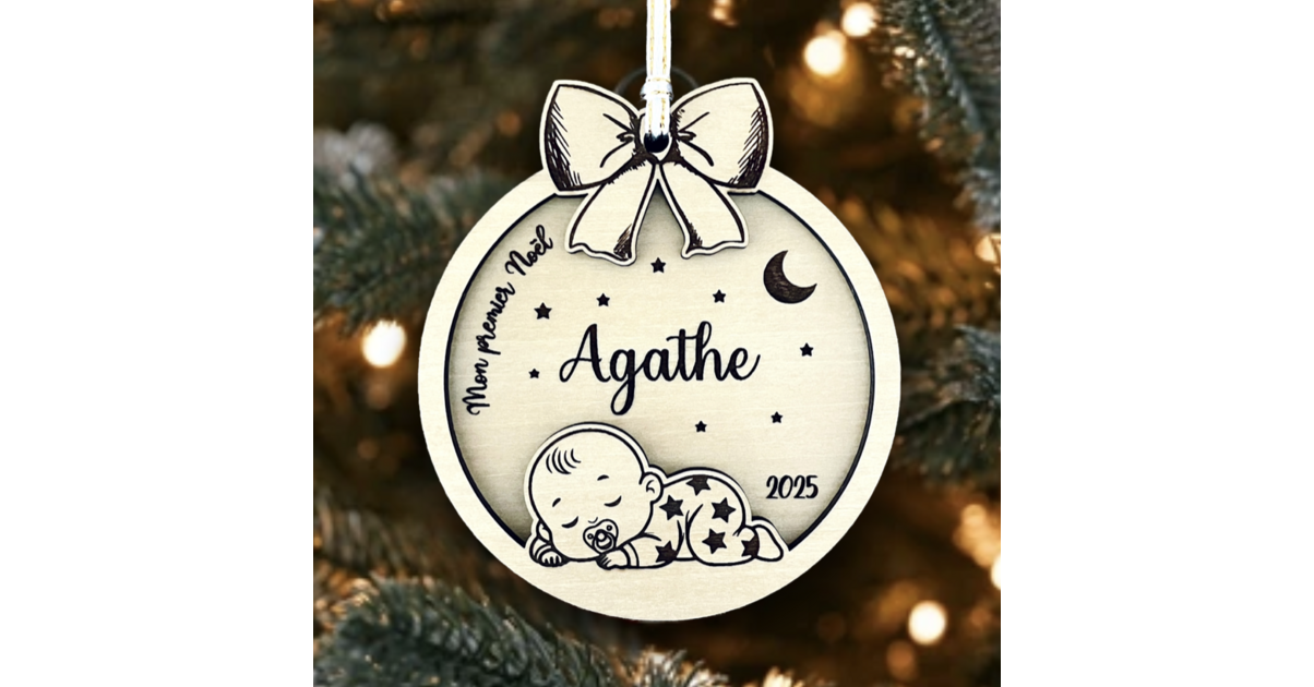 Idéal pour célébrer le mon premier noel, un mariage, un anniversaire ou un emménagement, ce cadeau fera chaud au cœur de vos proches. Boule de Noël en verre. Personnalisée Matériaux de Qualité : Fabriquées en bois de haute qualité de 7 mm d'épaisseur, nos boule de noel personnalisée sont dotées d'une gravure haute définition pour un rendu clair et précis. Décoration Sapin Gravée Boule Noël Personnalisée Bébé Mickey - Cadeaux Personnalisé Cadeau Personnalisé Famille Que diriez-vous d'un Noël qui ne ressemble à aucun autre ? Un Cadeau Personnalisé : N’hésitez pas à offrir un cadeau unique et touchant avec notre boule de noel personnalisée. Que vous les suspendiez dans votre sapin, que vous les posiez sur la cheminée ou que vous les offriez en cadeau, elles capturent l'esprit de Noël et créent une ambiance festive fascinante. En bois de tilleul gravé au laser, tu peux ajouter le prénom, une date, un message... Diamètre 10cm, livrée avec un ruban et un sac cadeau. Fabriquée en France... Un boule de noel personnalisée chargé de souvenirs est en route Boule de Noël Personnalisable : Chaque boule de noël personnalisée est ornée d'un élégant ruban satiné, parfaite pour embellir votre sapin, être placée sur une cheminée, ou comme cadeau personnalisé. Chez Ma boule de Noël, nous savons combien votre commande est importante, qu'elle soit pour offrir ou pour vous. Depuis notre atelier normand, notre équipe veille au respect de vos choix de textes et au contrôle emballage de votre commande, pour une reception de celle-ci. dans les plus brefs délais Cadeau Personnalisé : Offrez un cadeau unique et touchant avec notre boule de noël personnalisable, idéale pour célébrer mon premier noel, un mariage, un anniversaire ou l'emménagement,Également un cadeau touchant et unique pour votre partenaire, vos parents ou vos amis. Boule de Noel Personnalisée : Transformez votre noël en un moment mémorable avec notre boule de noël personnalisée. Captivez l'esprit de Noël et créez une atmosphère visuelle époustouflante pour des fêtes romantiques et inoubliables Chaque boule de noel personnalisée être gravé avec 2 à 10 noms, dates ou messages spéciaux, créant ainsi une décoration de sapin mémorable qui évoquera des souvenirs précieux. Cliquez sur “personnaliser maintenant”;choisissez votre style préféré (Modèle papillon/élan à feuilles orange/élan à feuilles jaunes/élan à feuilles vertes et rouges);Sélectionnez le nombre de noms que vous devez personnaliser ; remplissez votre nom personnalisé, votre texte ou votre date, et enfin sélectionnez la quantité que vous devez personnaliser.
