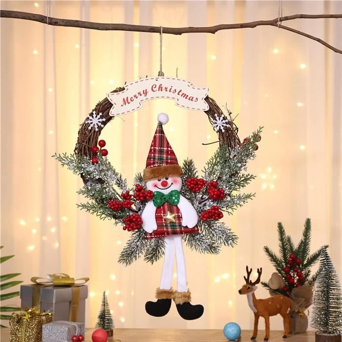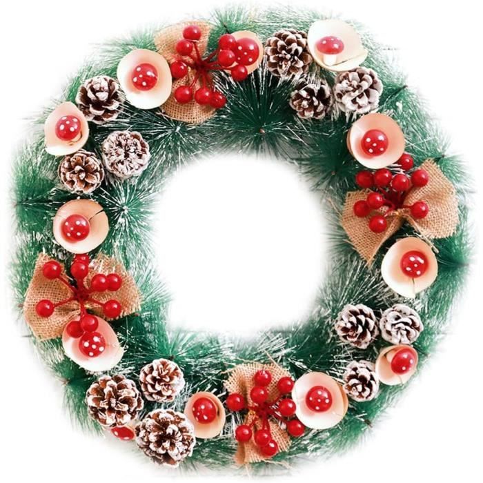 Sa robustesse dans divers environnements permet de créer une atmosphère chaleureuse de vacances dans toute la maison et le jardin, tout en résistant aux conditions changeantes. Couronne de Noël pour porte d'entrée, décoration de Noël Elle accueille les invités avec une festive pendant la saison des fêtes, et sa construction solide assure une tenue parfaite et vibrante pour une longue durée. Couronne Noël Décoration Porte Couronnes De Noël Pour Porte D'Entrée Décorations De Vacances Guirlande Couronne 30x27cm Tissu En raison de différentes mesures manuelles, veuillez permettre une différence de taille de 1 à 2 cm. Accent de Fêtes Élégant: La couronne de Noël d'hiver présente un effet de décoration en couches qui améliore la profondeur visuelle et crée une ambiance festive raffinée. Couronne De Noël Pré-Éclairée Sans Fil Pour Porte D'Entrée, Vacances... Elle est parfaite pour rehausser votre décor saisonnier en un d'œil, que ce soit pour des rassemblements familiaux ou des préparatifs de dernière minute pendant les fêtes. Sa conception polyvalente en fait un accessoire de décoration de fêtes parfait pour accueillir chaleureusement vos proches pendant la période des vacances, en s'adaptant à divers environnements domestiques., Les élément Noël Pour Porte D'Entrée, Couronne Noël Du Père Noël Gnome, Décorations... Touche Festive Accueillante: Cette couronne de Noël pour porte d'entrée présente des accents détaillés de pommes de pin et baies qui créent une décoration festive intemporelle. Son ton de base neutre complète harmonieusement les lumières et les nœuds, la rendant parfaite pour les portes d'entrée ou les manteaux lors des rassemblements festifs, tout en s'adaptant à divers styles de décoration intérieure et extérieure. Décor Hivernal Robuste: Cette couronne de Noël pour porte d'entrée associe cônes givrés, baies et pin artificiel réaliste pour créer un charme hivernal captivant qui embellit votre décoration intérieure. Idéale pour les fêtes de Noël et les événements festifs, cette couronne apporte chaleur et charme à votre maison tout en complétant divers thèmes saisonniers. Assemblage Sans Effort: Grâce à sa conception adaptable, cette couronne de Noël en pommes de pin permet une installation rapide et simple sans outil.