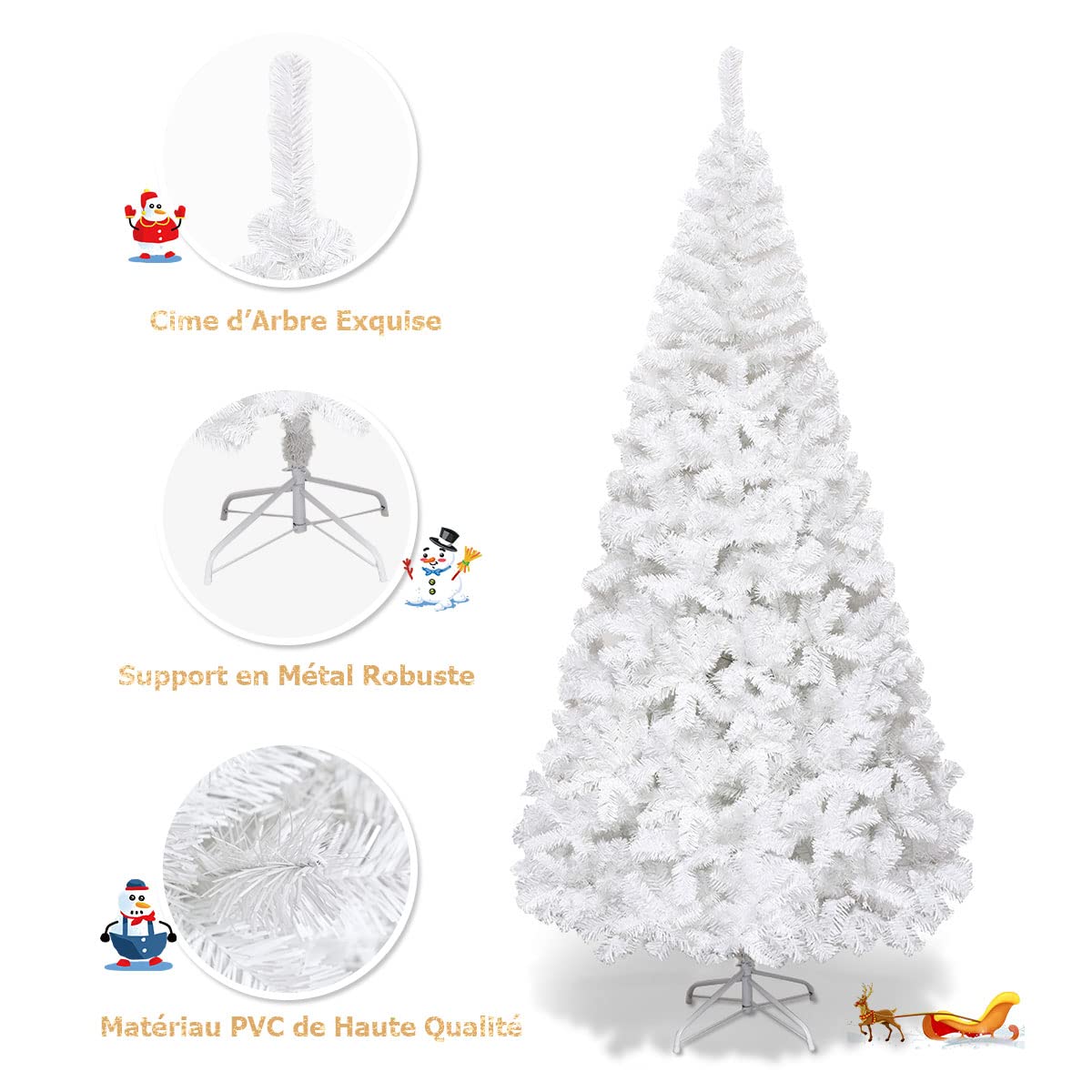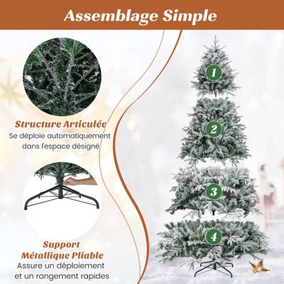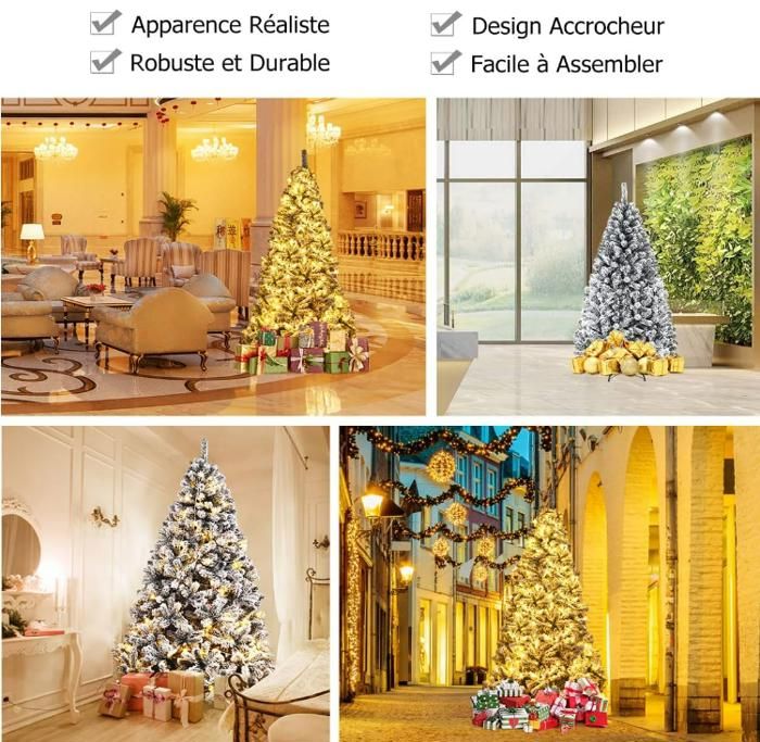 Polyvalence multi-scénarios — Que ce soit pour décorer un coin du salon, embellir un bureau ou mettre en valeur une vitrine de magasin, ce sapin à fibre optique sublime instantanément l’ambiance festive de n’importe quel espace. Sapin De Noel En Fer DREAMADE Sapin De Noël Pré-éclairé 150 Cm En Forme De Mannequin, 465 Branches, 50 Lumières LED Blanc Chaud, Pommes De Pin - Maison Volant Xbox Orné de 96 branches denses et d’un feuillage réaliste, il offre une forme tridimensionnelle pleine et verdoyante. Célébrez la magie des fêtes de fin d'année avec cet arbre de Noël élégant et unique. Conçu avec des aiguilles de pin en PVC vert foncé et des pommes de pin rouges, cet arbre apportera une touche de nature dans votre maison Lumières scintillantes — Ce charmant sapin de Noël est équipé de 96 LED blanches et violettes préinstallées, complétées par des fibres optiques multicolores et huit modes d’éclairage. Matériaux ignifuges & sécurité — Le sapin de Noël artificiel éclairé est fabriqué en PVC ignifuge de haute qualité, garantissant non seulement la sécurité contre l’incendie, mais aussi une grande robustesse et résistance à la déformation. Sapin De Noël Artificiel - Effet Neige Pommes de Pin - Vert... Que ce soit pour décorer votre maison ou valoriser les vitrines des magasins, il met instantanément en valeur tout espace, créant un Noël scintillant et inoubliable. Les lumières à fibres optiques LED bicolores préinstallées proposent huit modes d’éclairage, passant aisément de scènes chaleureuses à festives. Il vous accompagnera fidèlement durant toutes les fêtes de fin d’année. DREAMADE Sapin de Noël Artificiel en Flocage 225CM, avec 1010 Branches et Charnière Automatique, Décoration Festive pour Maisons - Maison Fabriqué avec des matériaux ignifuges de qualité et un socle robuste en métal, il assure une utilisation sûre et une installation simple. Support stable en métal — Ce sapin de Noël artificiel est doté d’un socle croisé en métal avec pieds antidérapants pour assurer la stabilité.